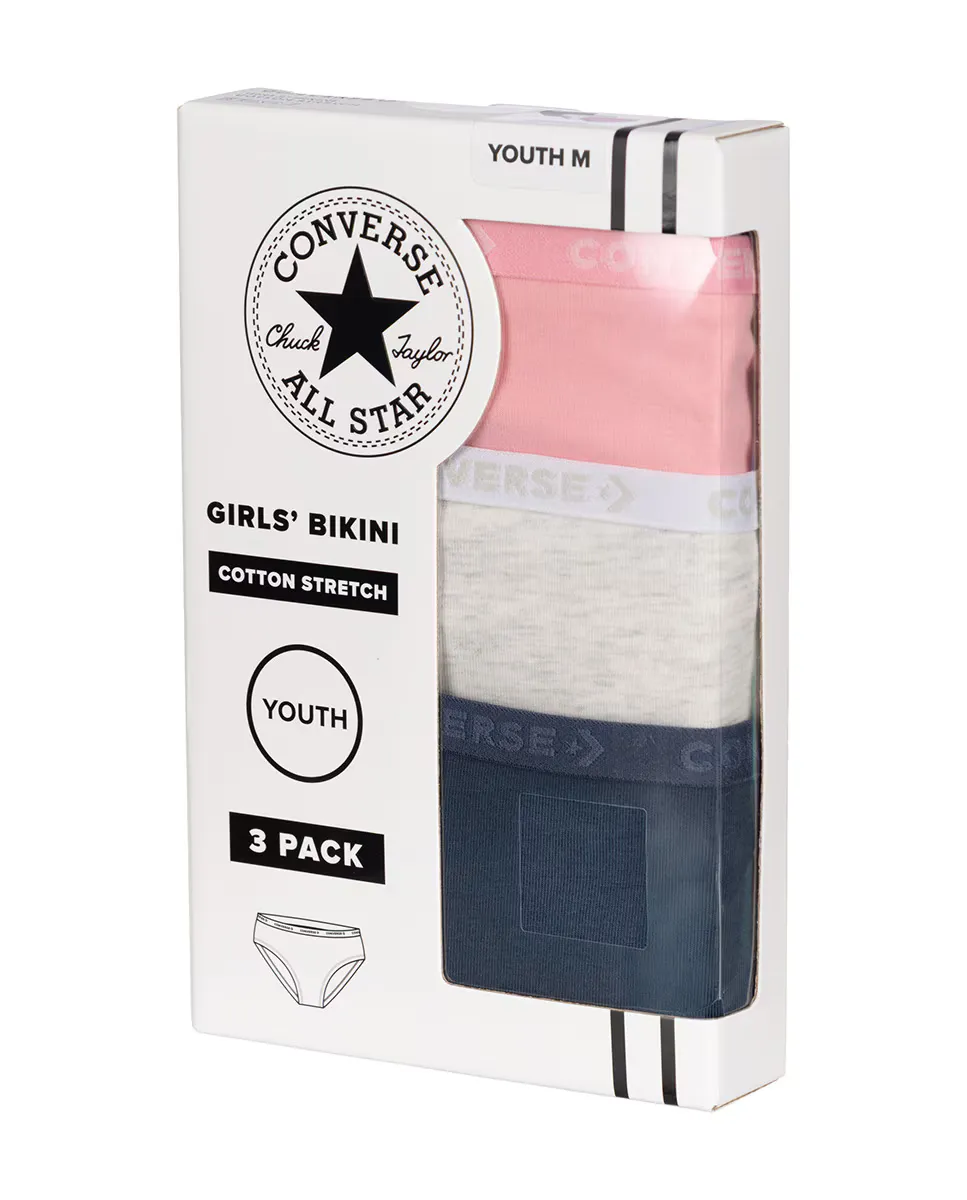 С набором из 3 бикини Converse Classic ваша дочь будет чувствовать себя комфортно каждый день. Мягкая трикотажная ткань адаптируется к ее движениям, а элегантный жаккардовый эластичный пояс добавляет игривости. Эта базовая модель в тройном комплекте обеспечивает повседневный и дышащий комфорт для девочек, которые не могут усидеть на месте.
