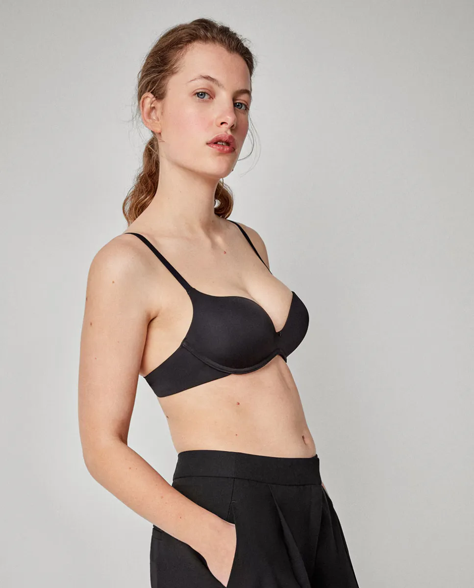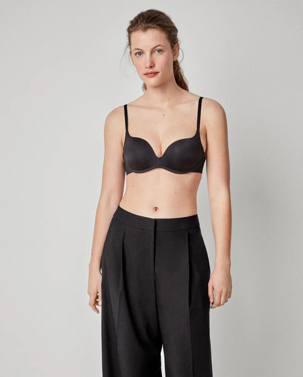 Бюстгальтер без косточек с глубоким вырезом. Регулируемые и многофункциональные бретели с двойными спинками и невидимыми отделками. Доступен только в чашке B.