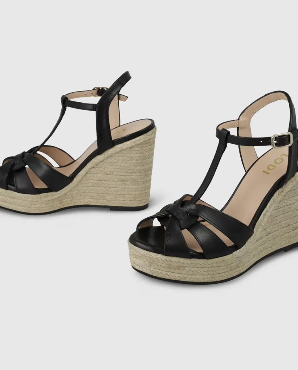 Женские кожаные босоножки на танкетке Lodi, черный
