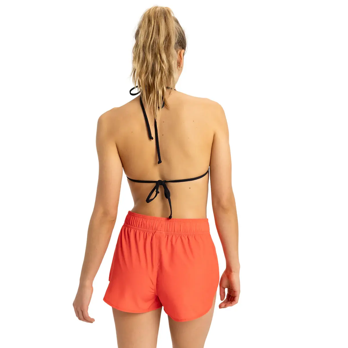 Шорты для женщин. Характеристики включают: Коллекция: Roxy Essentials, Ткань: эластичный поплин в 4 направлениях из 55% переработанного полиэстера, 37% обычного полиэстера и 8% эластана, Пояс: полностью эластичный пояс, длина шага: длина шага 5 см, Закрытие: шнурок, Карман: боковые карманы и Бренд: логотип в принте на левом разрезе ноги.
