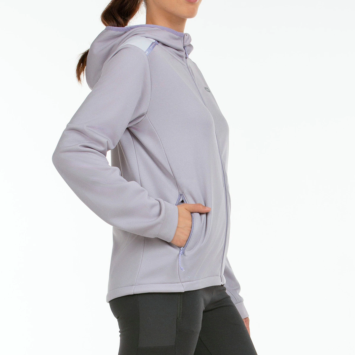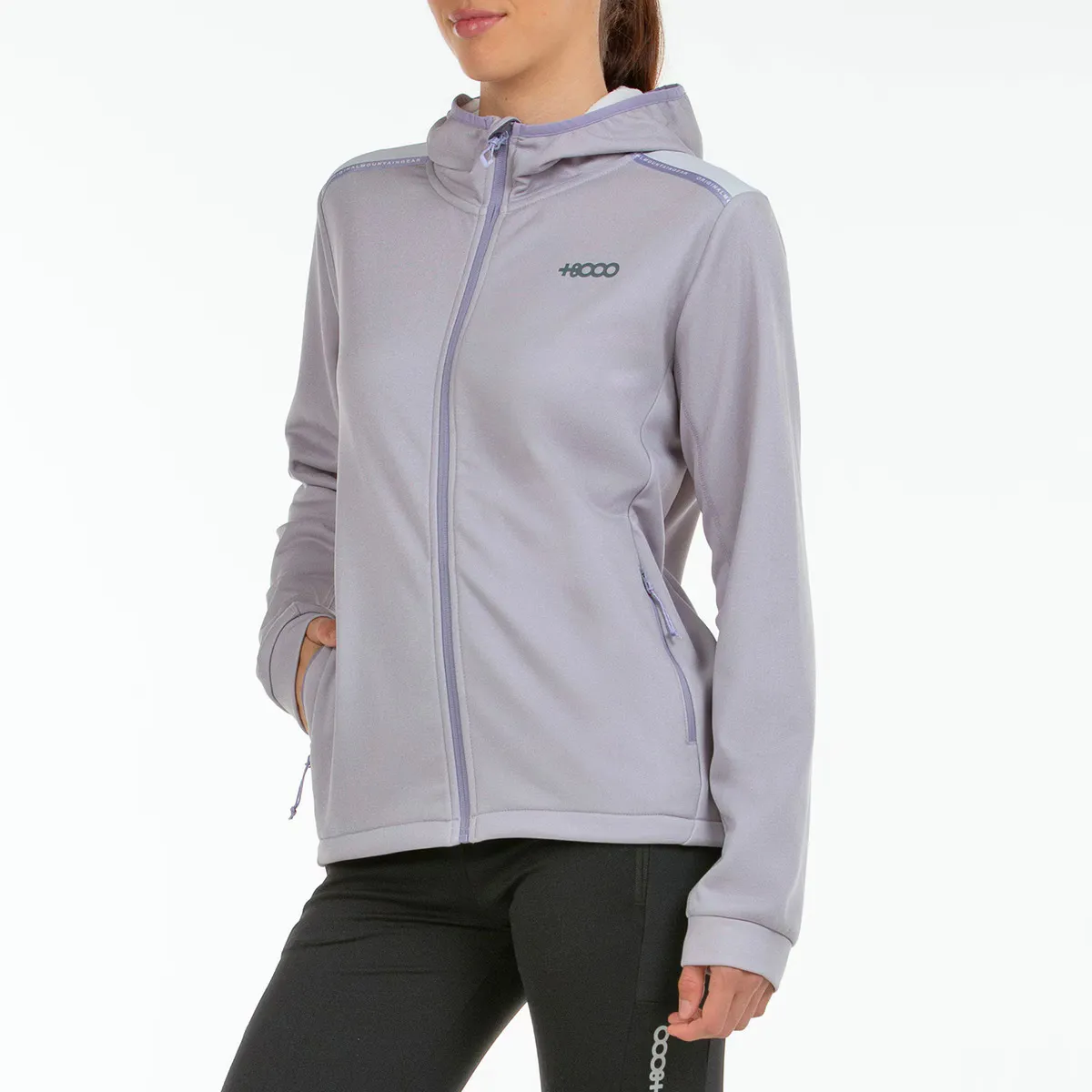 Средняя куртка для женщин для активного отдыха. Модель с капюшоном и полной застежкой-молнией, ткань Interlock 100% полиэстер с полярной подкладкой, качество 'Termalflex'. Капюшон с эластичным ободком. Застежки-молнии на боковых карманах. Регулируемый подол с зажимами и контрастными тканевыми вставками, устойчивыми к трению, на плечах.