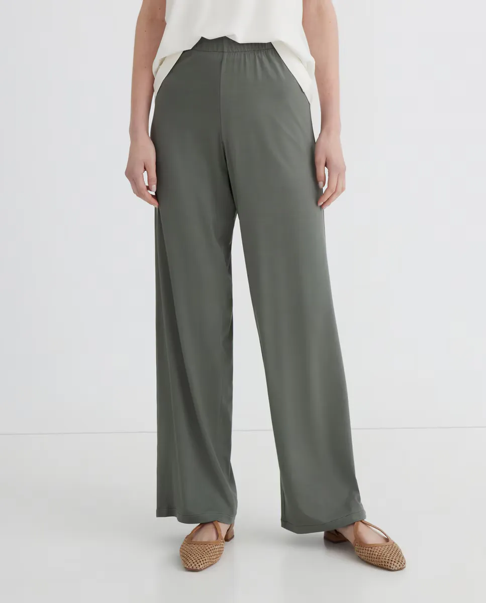 Прямые длинные брюки с резинкой на талии.