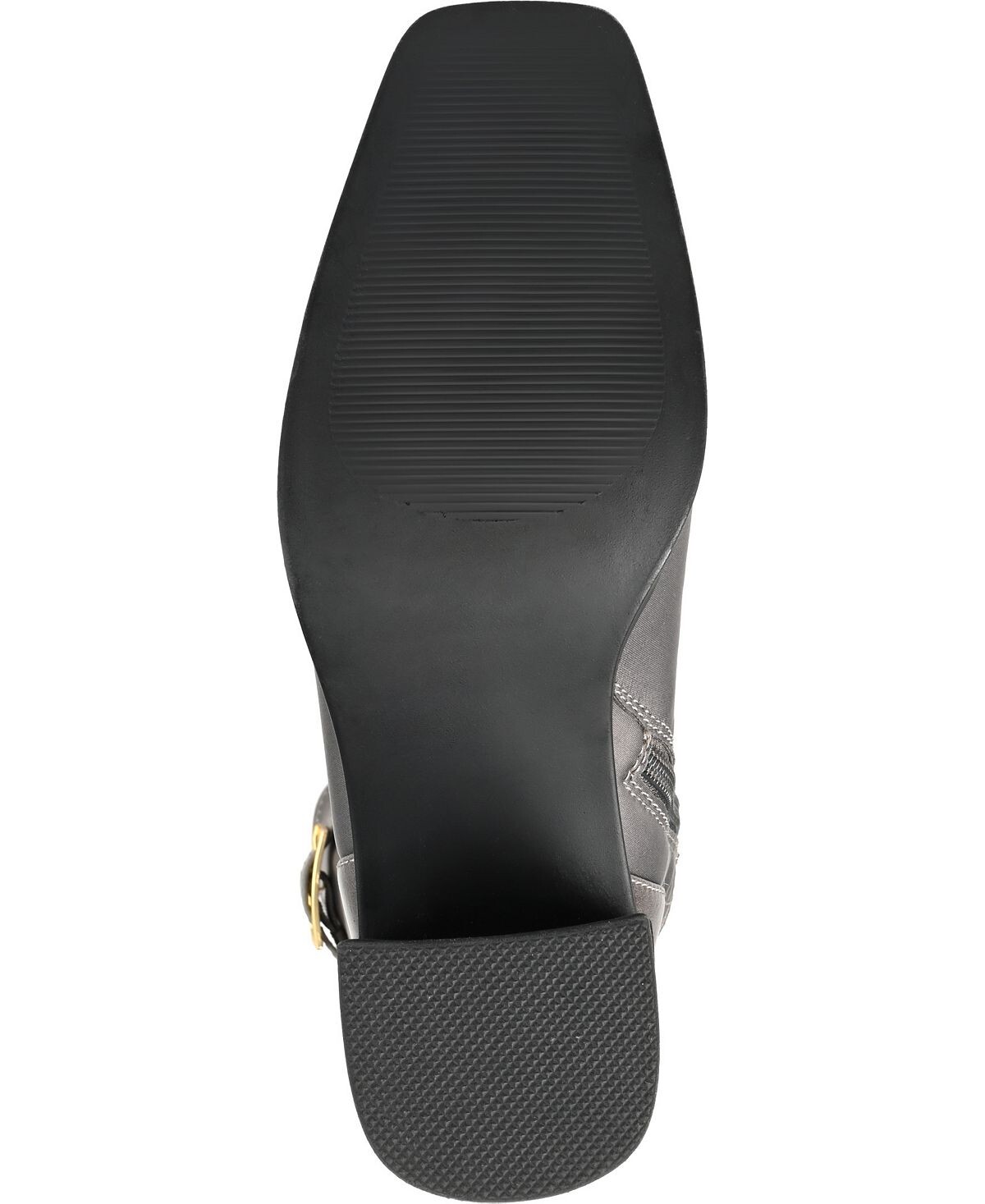Переосмысление классических ботинок для верховой езды — коллекция Gaibree от Journee. Эти ботинки высотой до колена имеют квадратный носок, комфортную стельку из пеноматериала толщиной 4 мм и верх из мягкой ткани с гладкой застежкой-молнией. Массивный каблук и ремешки с пряжками придают этому простому силуэту свежий вид.