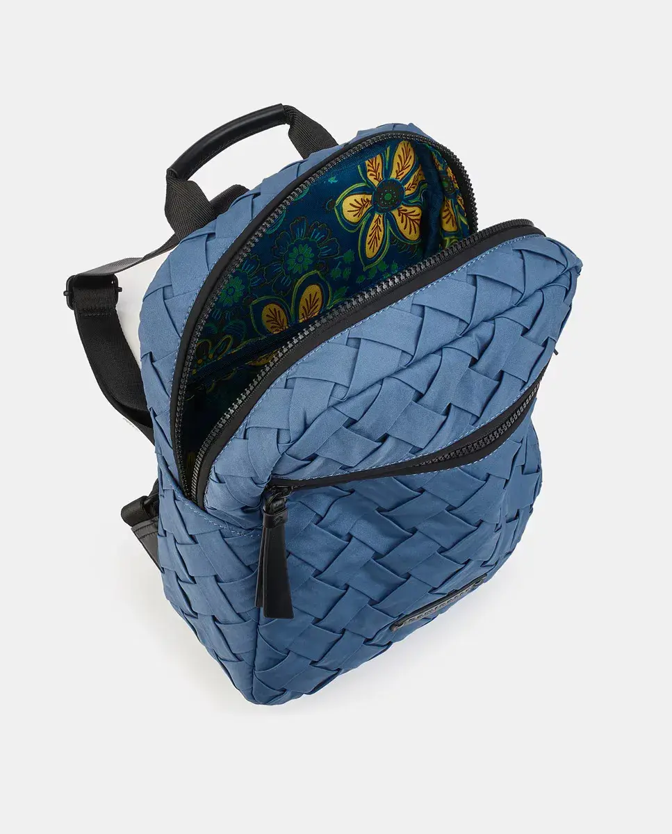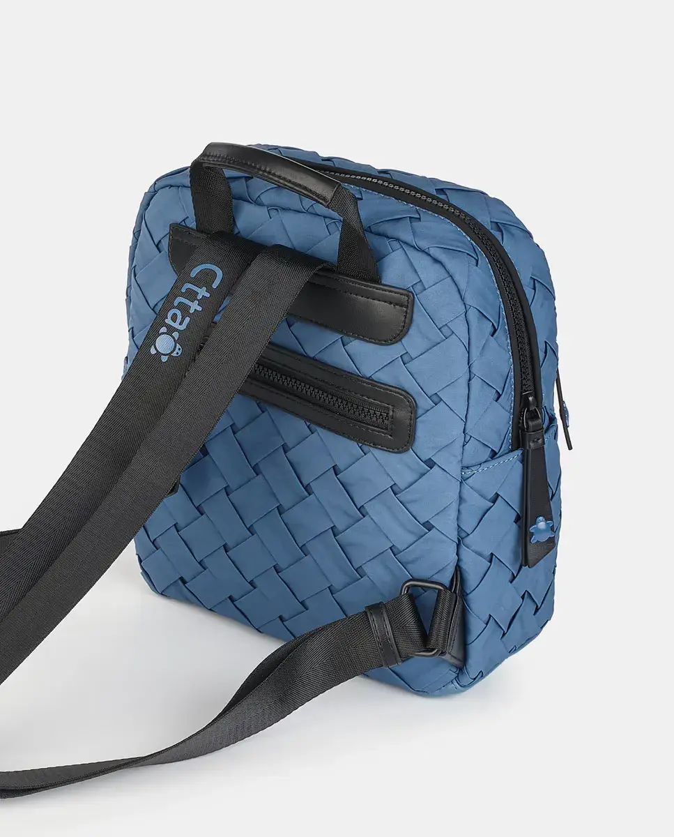 Рюкзак из плетёного нейлона цвета горчицы с застёжкой на молнии. Внешний и задний карманы на молнии. Два регулируемых ручки. Внутренний карман на молнии.