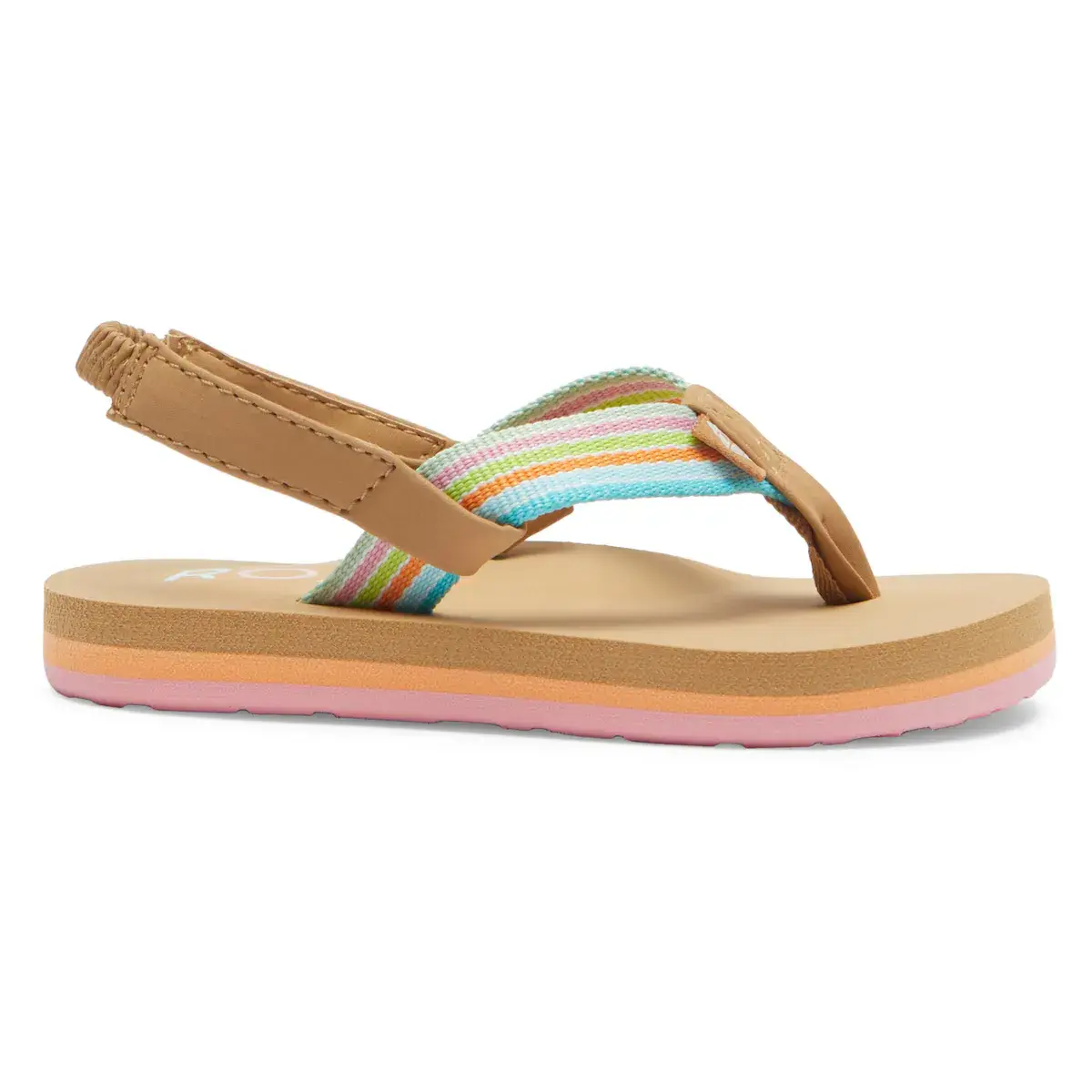 Детские сандалии. Характеристики: Материал: верх из искусственной кожи и полиэстера, переработанный полиэстер REPREVE с возможностью отслеживания, изготовленный из пластиковых бутылок, Детали: текстильная лента в верхней части, Стелька: мягкая стелька из EVA, Подошва: Rebelón, Застежка: эластичная лента на задней части каблука.