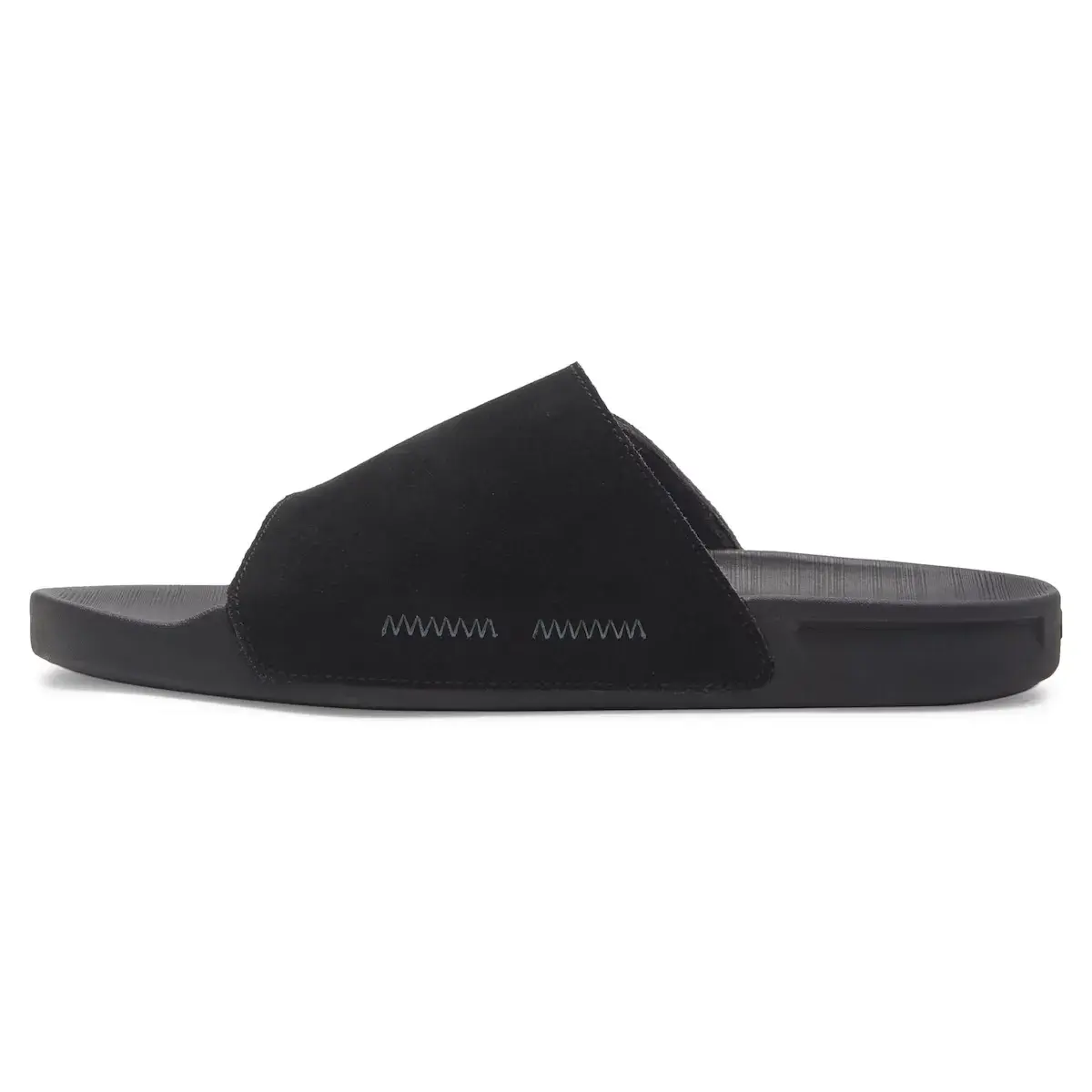 Сандалии-слайды для мужчин. Характеристики включают: Ткань: верхняя часть из регулируемого замши, Стелька: стелька Hydrobound супер мягкая с анатомически правильным профилем, Подошва: нескользящая подошва с маркировкой, Внешняя подошва из резины, Внутренняя ткань: микрофибра и Другие особенности: покрытие из синтетической замши.