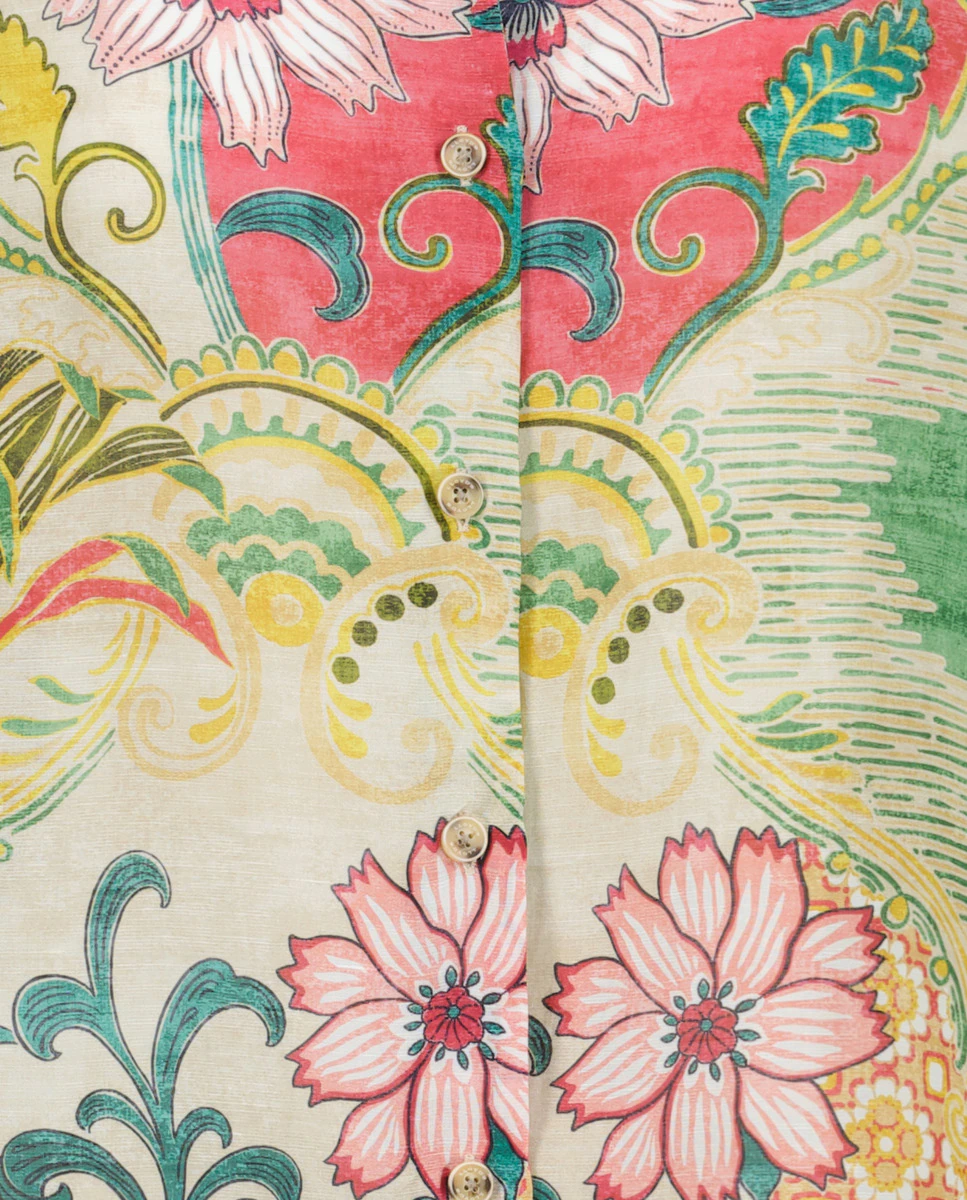 Льняная безрукавка с цветочным принтом.