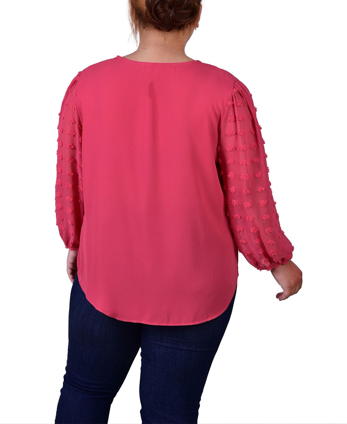 Эта блузка добби из коллекции NY Collection с шифоновыми жаккардовыми рукавами идеально подойдет для вечеринки или свидания. Она придаст драматизма.