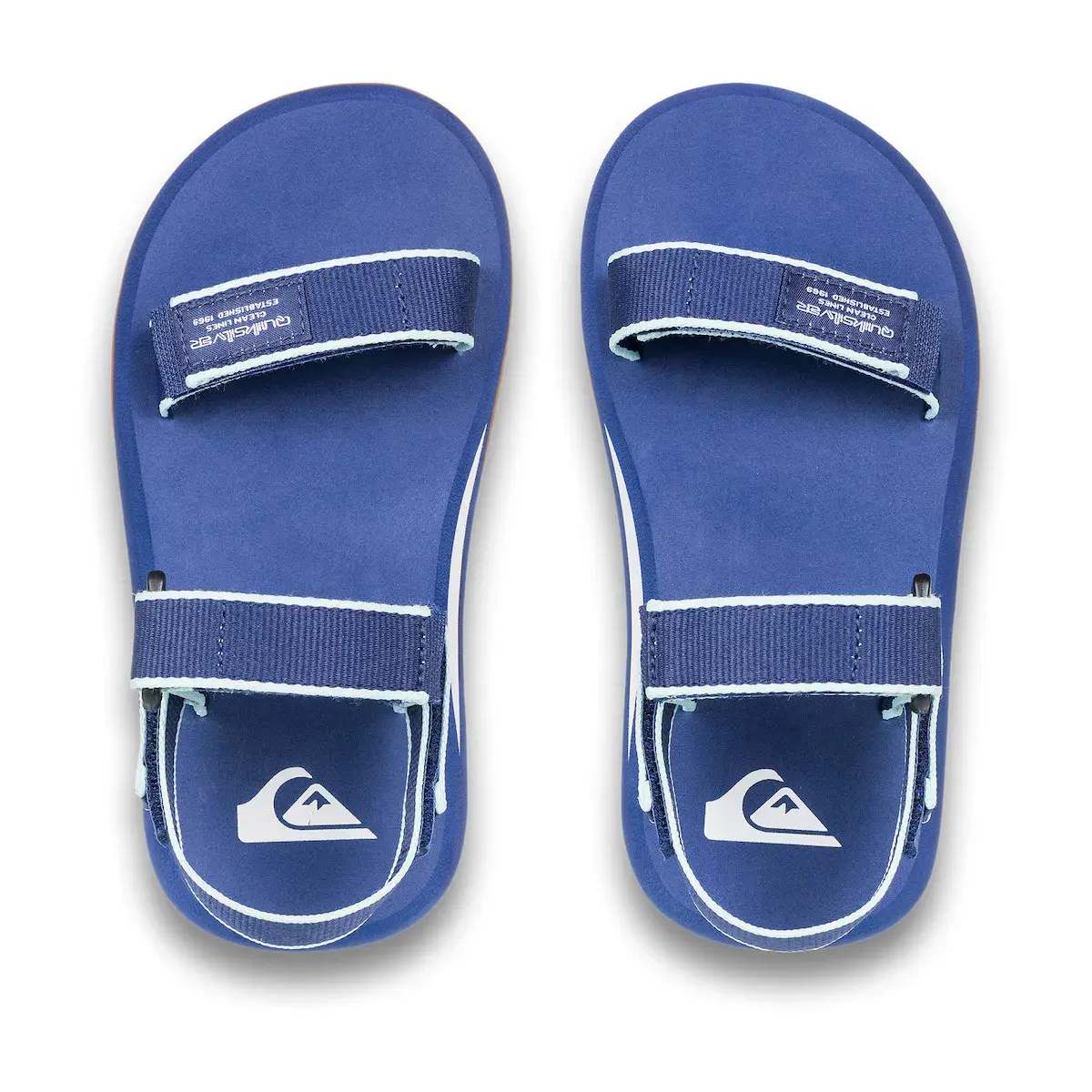 Сандалии для детей. Особенности включают: верх с полностью регулируемым полиэстеровым ремешком, полностью съемный задний ремешок, межподошва из ЭВА двойной плотности для большего комфорта и поддержки, поддержка анатомического свода стопы и логотипы Quiksilver с дизайном в елочку различной ширины на прочной резиновой подошве.