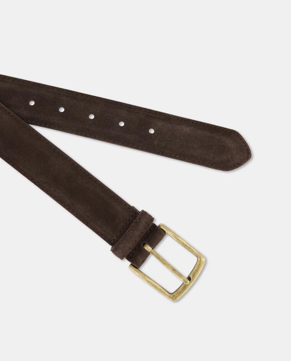 Замшевый ремень с полузолотой пряжкой.