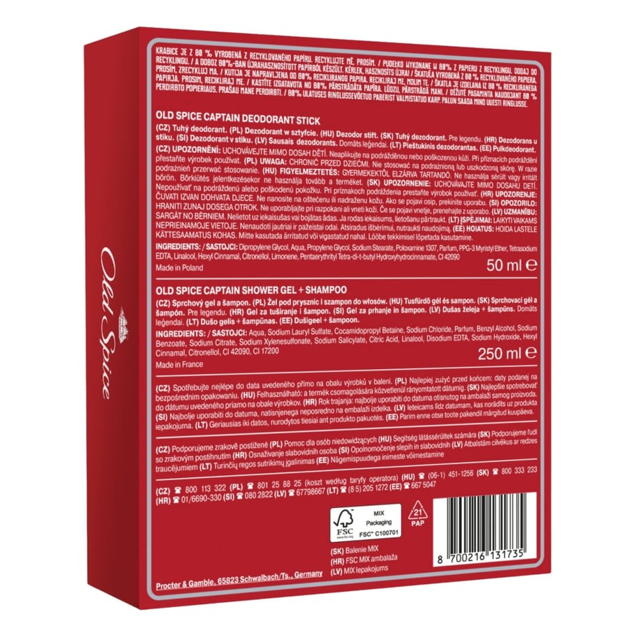 Название: Old Spice Captain Набор из 2 дезодорантов 50 мл Гель для душа 250 мл