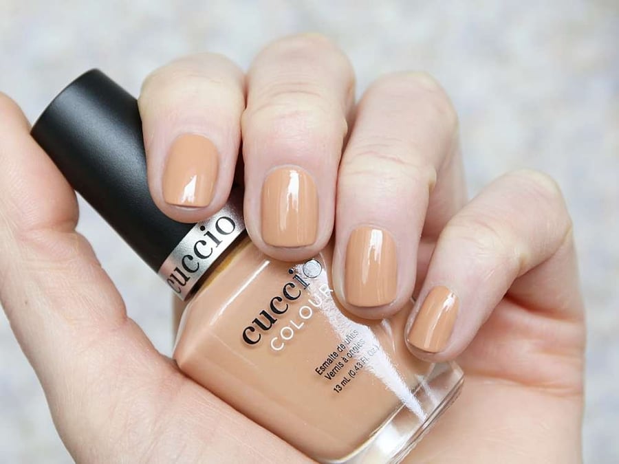 7. Нанесите тонкий слой выбранного вами оттенка лака для ногтей Cuccio Color на каждый ноготь. После высыхания нанесите второй слой.