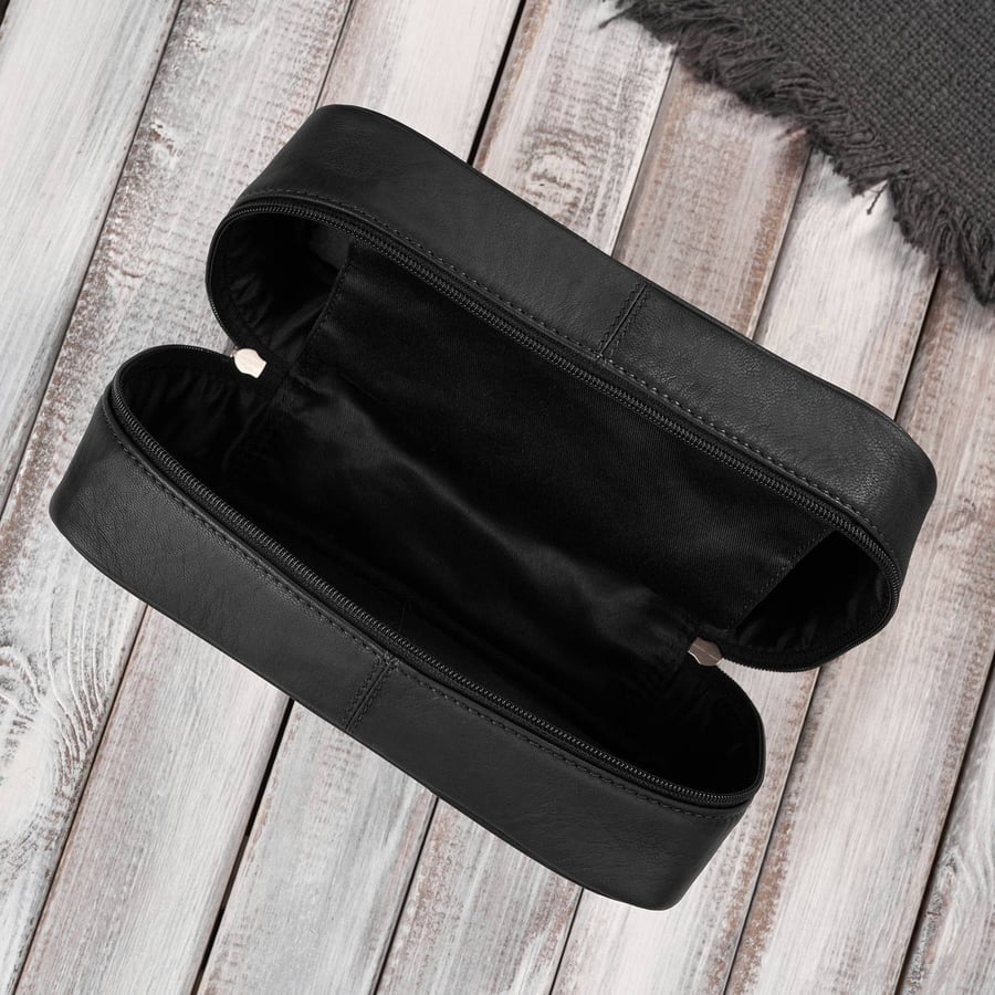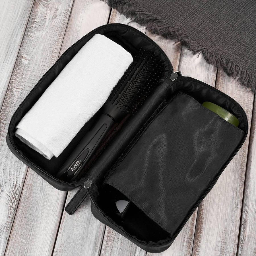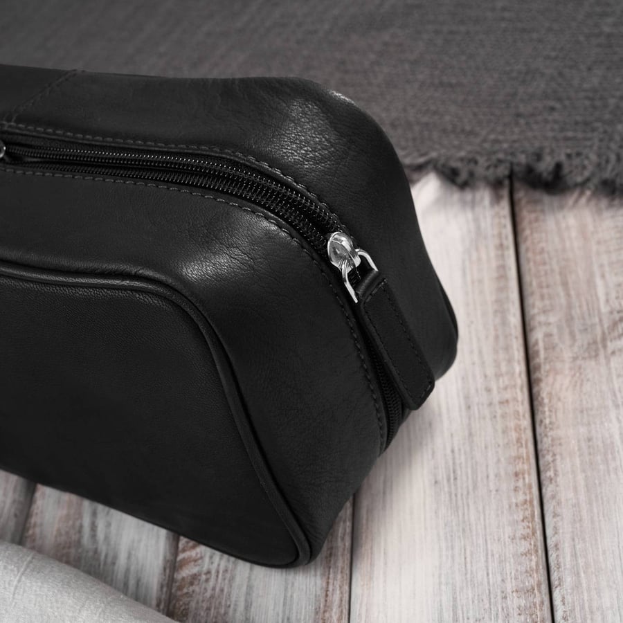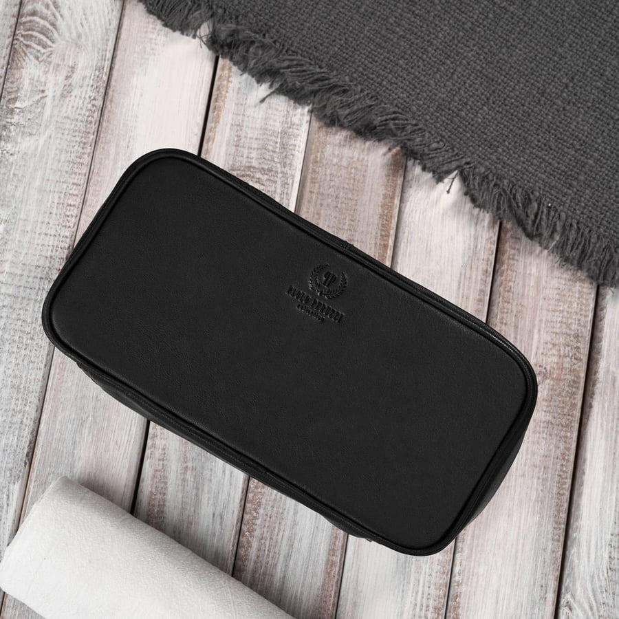 Стильная и удобная кожаная дорожная косметичка Paolo Peruzzi — незаменимый аксессуар не только в путешествии. Наша самая продаваемая дорожная косметичка изготовлена из натуральной кожи глубокого черного цвета.