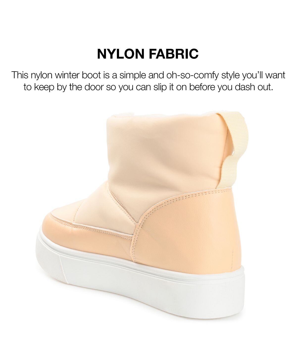Легкие и очень удобные ботинки Sethie от Journee Collection, которые вам захочется держать у двери, чтобы можно было надеть их, прежде чем закончиться. Эта нейлоновая зимняя модель с закругленным мыском и двухцветным узором создает смелый образ. Стелька из пеноматериала Tru Comfort Foam толщиной 4 мм делает эту модель очень удобной.