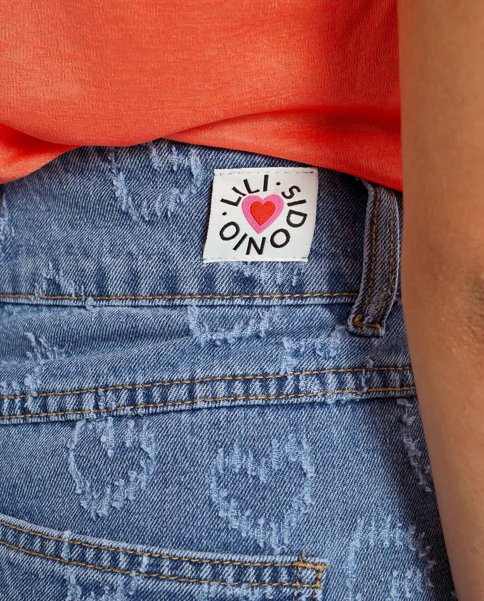 Женские короткие джинсовые шорты с принтом в виде сердца Lili Sidonio, синий