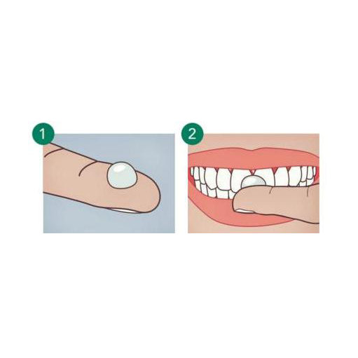 Нанесите небольшое количество средства чистым пальцем или ватным диском на поверхность зубов.