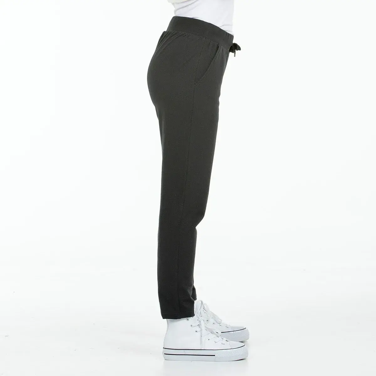 Длинные брюки для женщин с более узким силуэтом, эластичным поясом, шнурками и боковыми карманами. Ткань из хлопкового французского терри.
