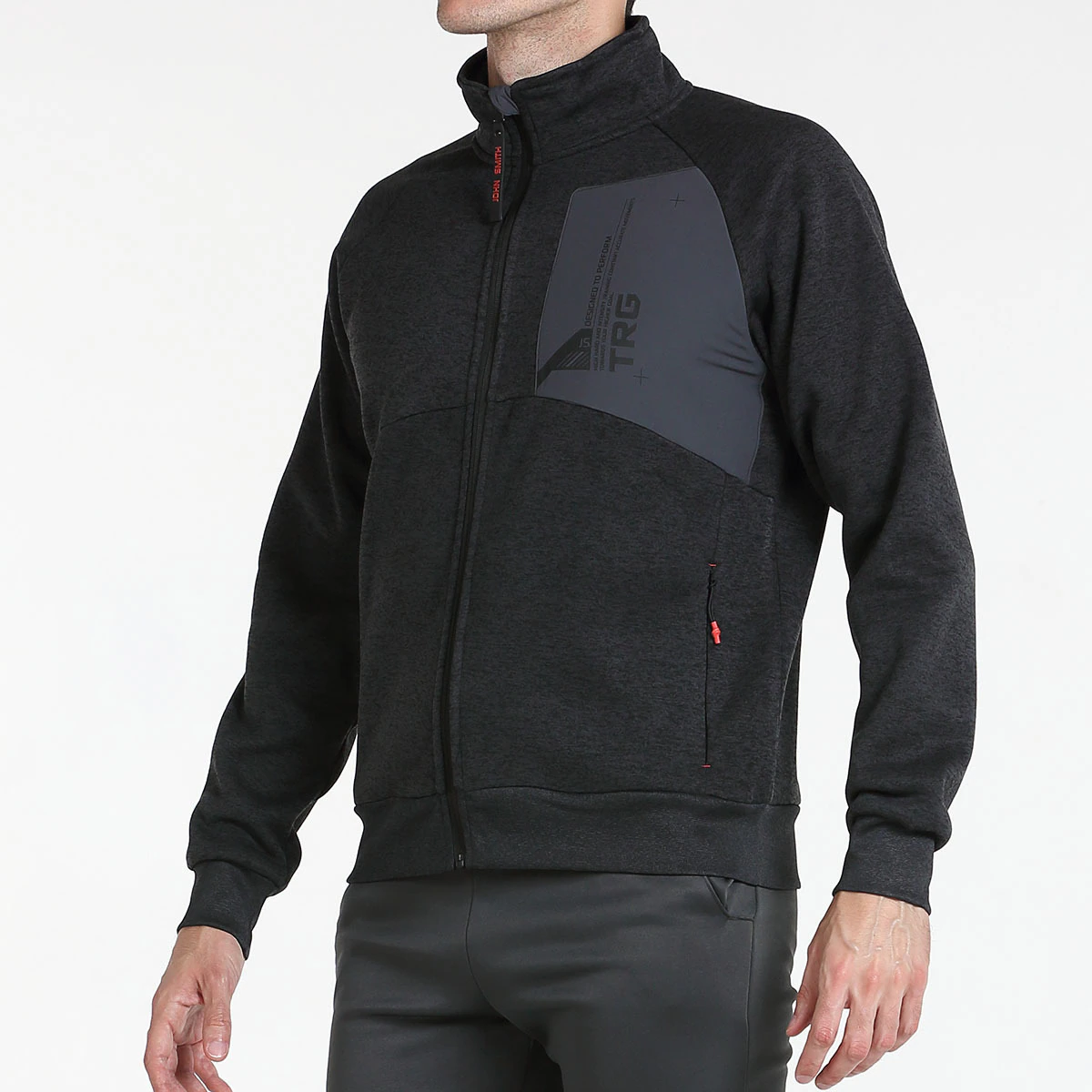 Открытый свитер с контрастной бостонкой, карманом на груди с принтом, боковыми карманами на молнии, с резинкой по низу и принтом на спине