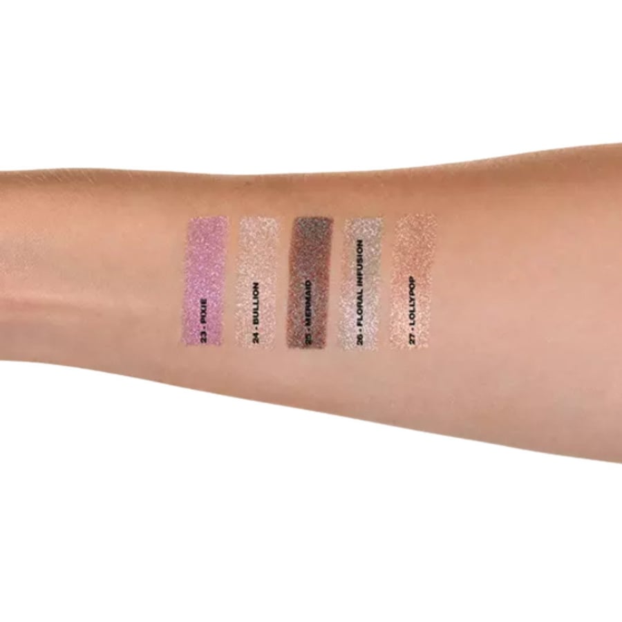 Мерцающие тени для век Shimmering Eyeshadows имеют цветную основу, в которую встроены мелкие светоотражающие частицы. Их можно использовать как по всей поверхности подвижного века, так и в качестве акцента в уголке глаза или по центру века. При аккуратном растушевывании они создают эффект легкого облака, а если вы рассчитываете на более интенсивный результат, нанесите средство похлопывающими движениями кончиков пальцев.