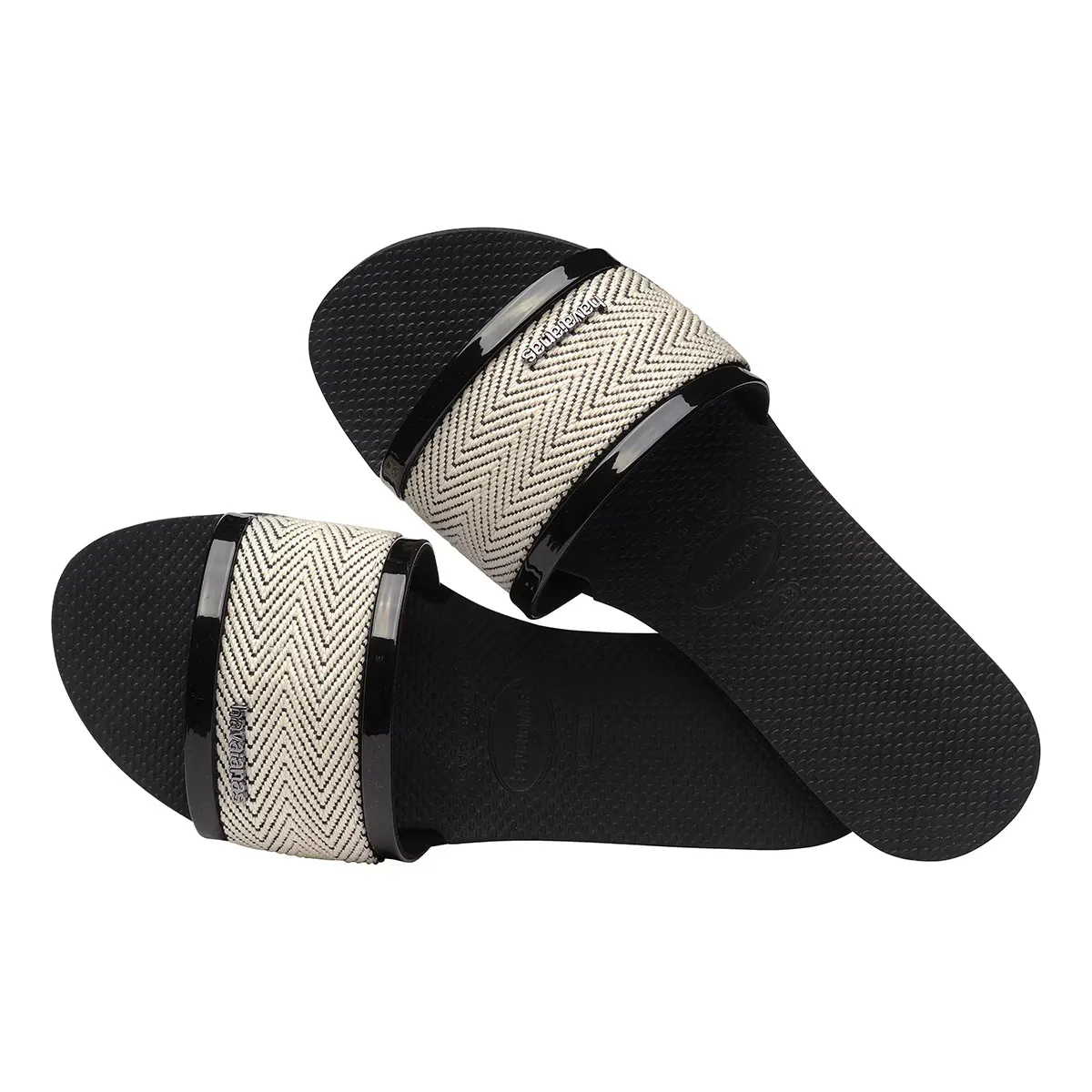 Havaianas You Trancoso Premium — это наши шлепанцы для самых элегантных случаев. Кроме причудливого зигзагообразного принта, они имеют обработку из полированного металла и двухцветную подошву. Цветовая палитра также выделяется своей элегантностью: песочный, бронзовый, розовый, черный или серебряный.