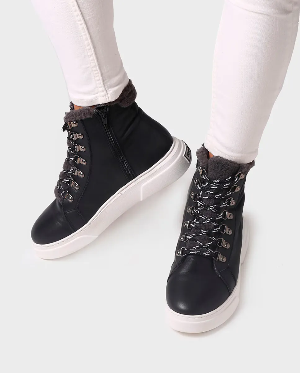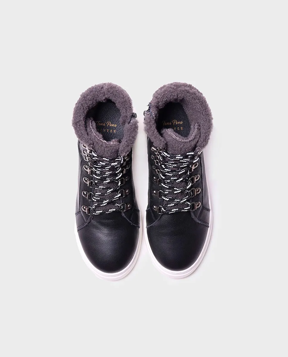 Женские кожаные ботильоны со шнурками и молнией Toni Pons, черный