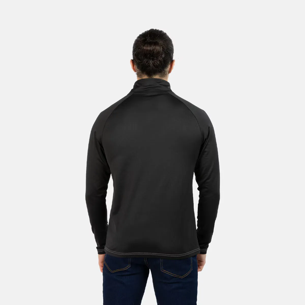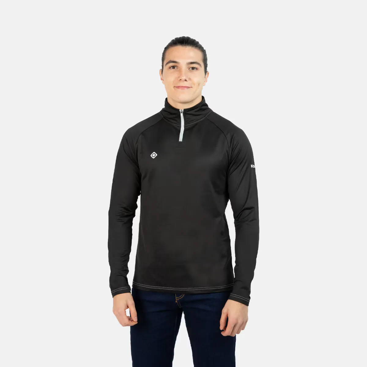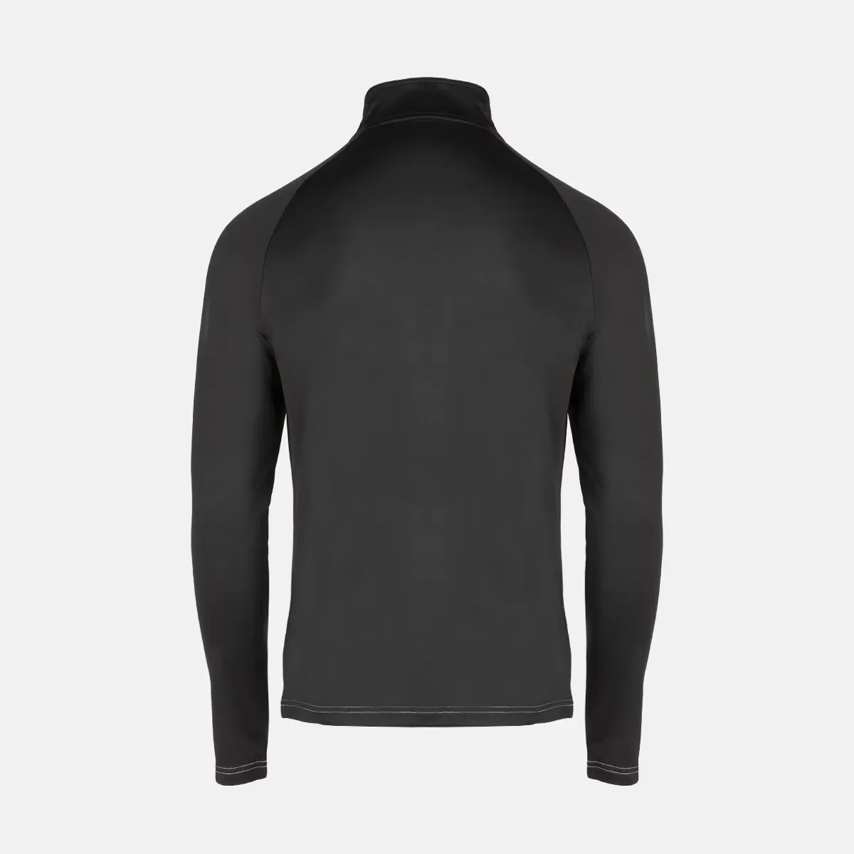 Полярная стрейчевая ткань: биэластичная, ветронепроницаемая, дышащая, быстро сохнущая. Высокий воротник с полу-молнией. Ранглан-рукава.