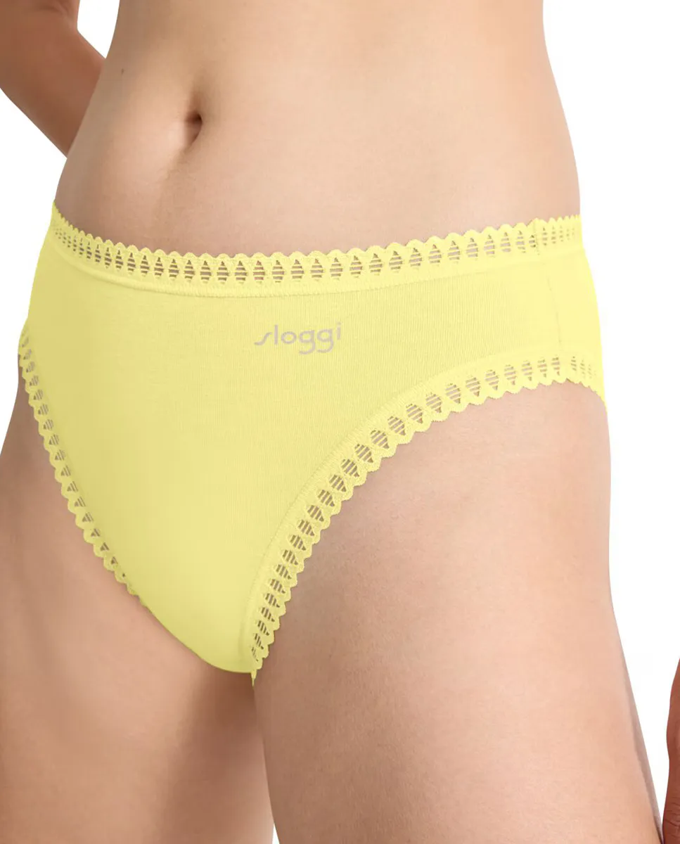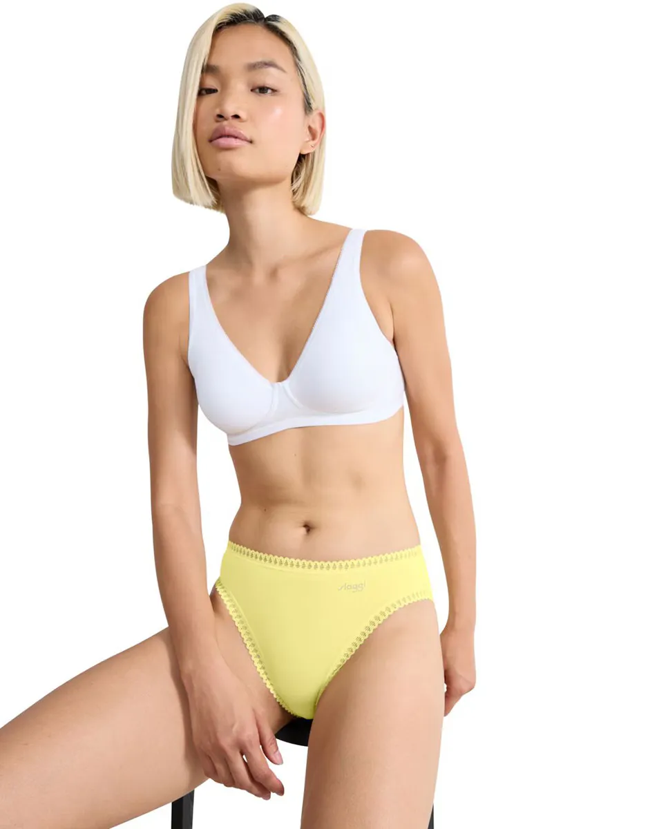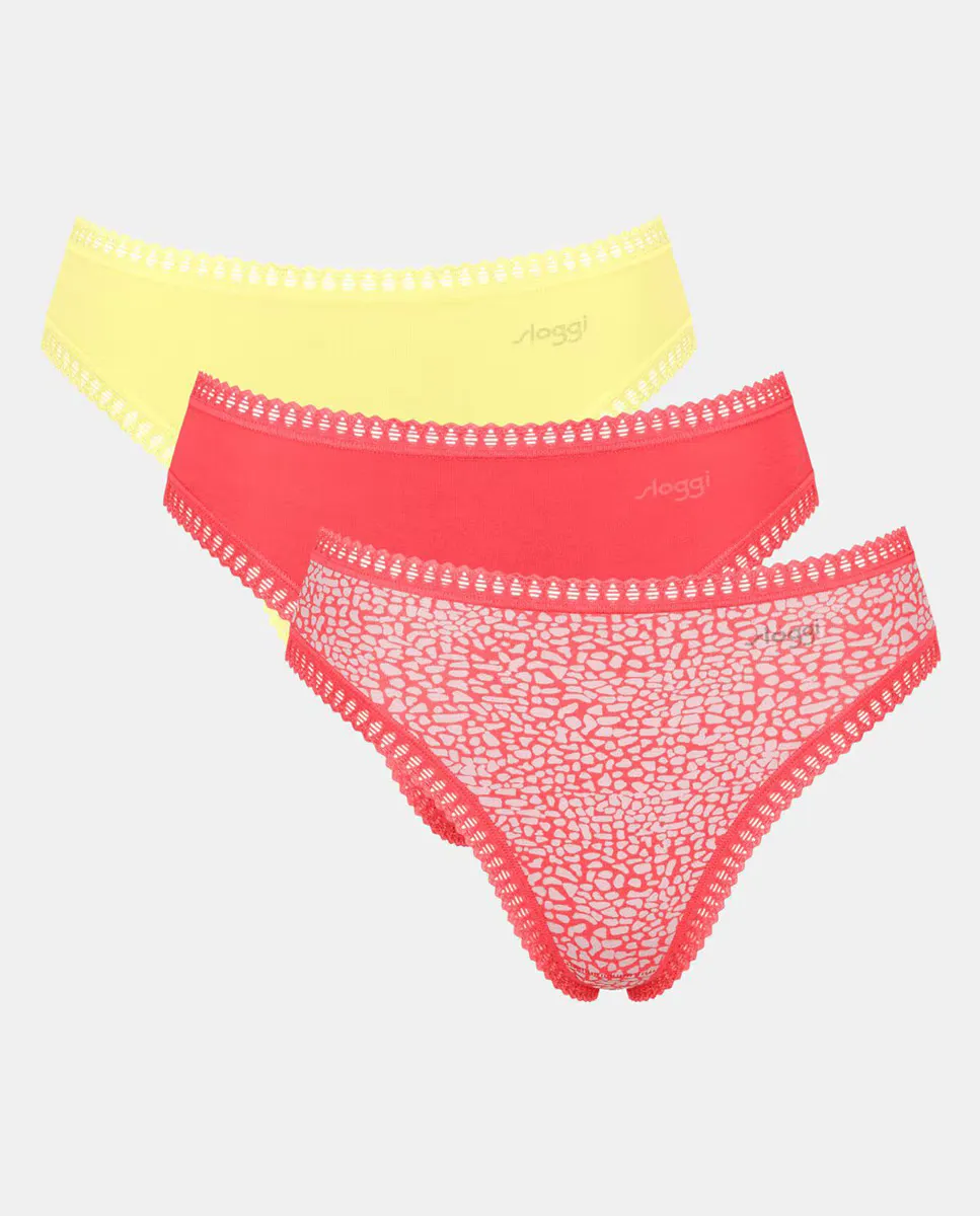 Пакет из 3 пар трусов с высокой талией на каждый день. Супер мягкий органический хлопок с сертификатом GOTS. Яркий графический кружевной кант на талии для женственного стиля. Уникальные принты sloggi сочетаются с тональными цветами в многоразовых наборах, чтобы предоставить вам все возможности.