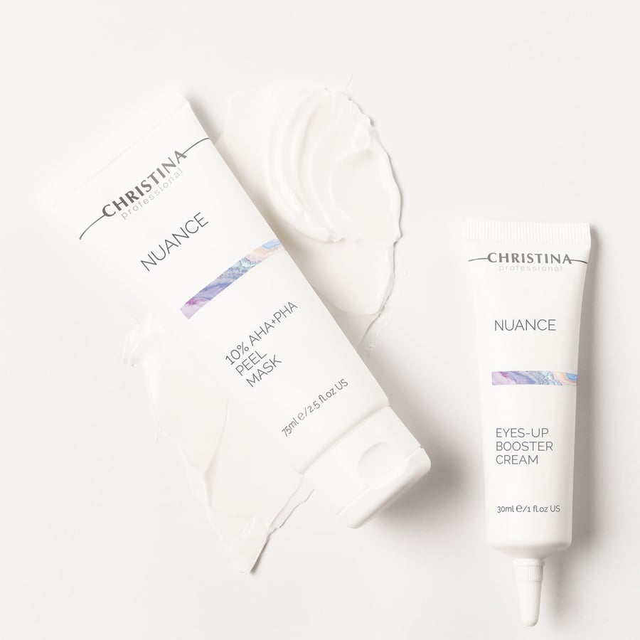 Линия NUANCE от Christina — это усовершенствованная серия косметических средств, созданная с учетом потребностей зрелой кожи. Средства этой линии направлены на борьбу со свободными радикалами, уменьшение воспалений и укрепление естественных защитных механизмов кожи, что способствует ее обновлению и оживлению.