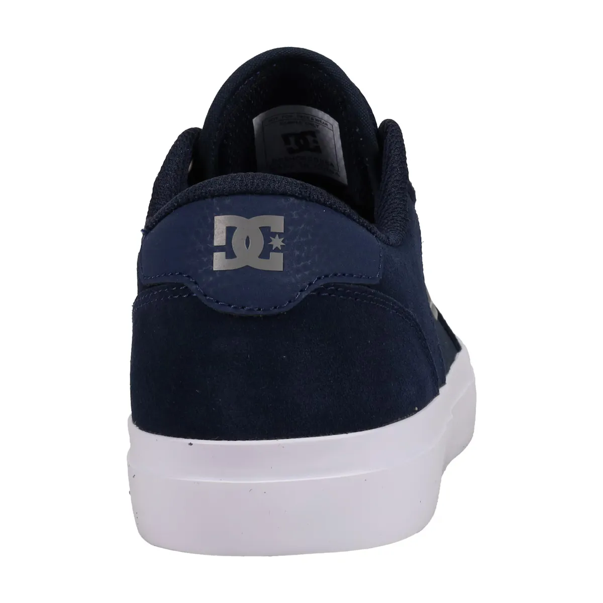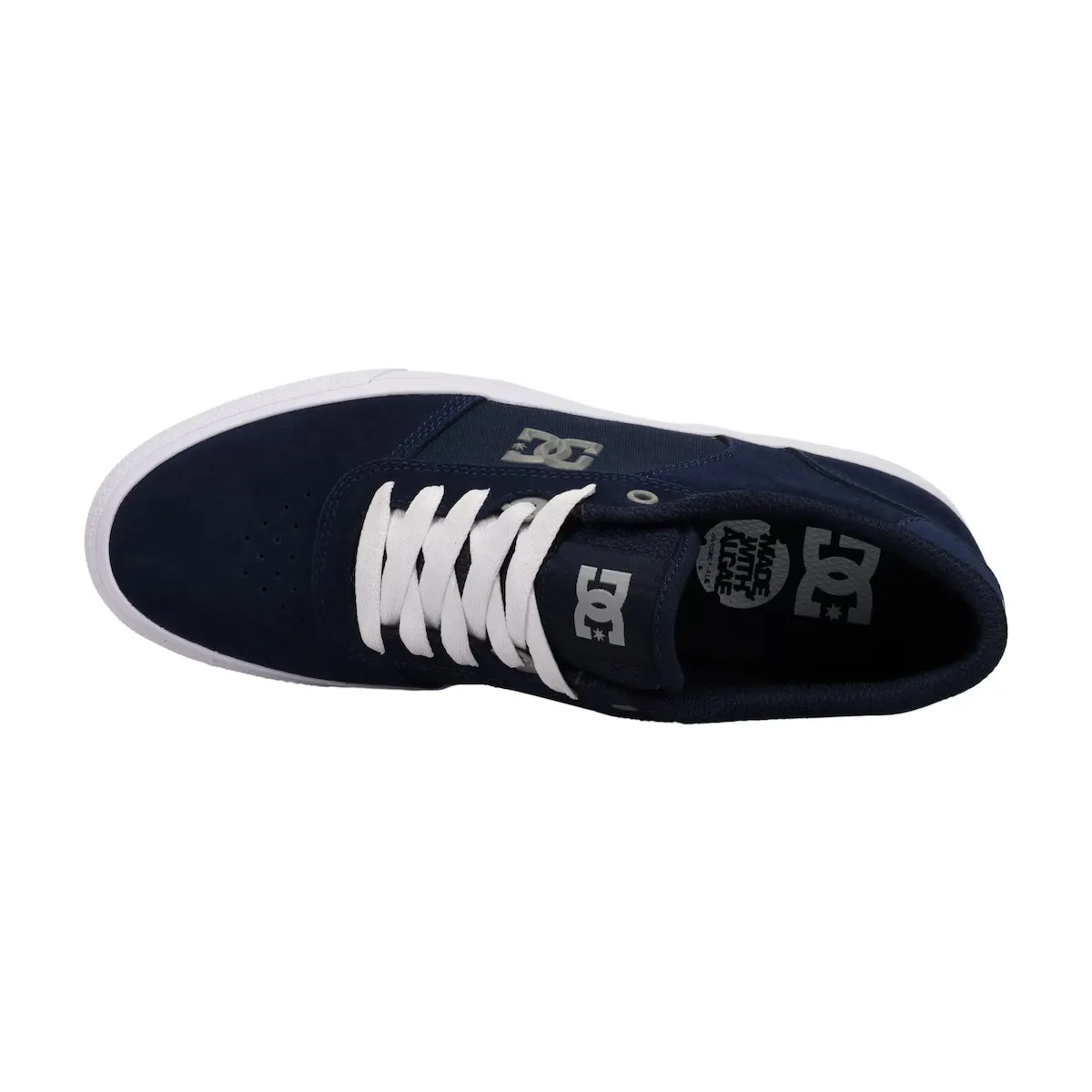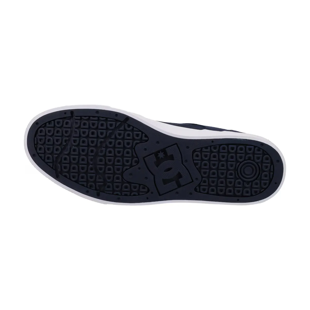 Кожаные кроссовки для мужчин. Характеристики включают: верх из кожи, передняя часть из замши или кожи, подошва с дизайном Pill Pattern DC на следах, стелька: стелька IMPACT-ALG, обеспечивающая амортизацию, язычок и воротник с подкладкой для большего комфорта и подкладка: текстильная подкладка.