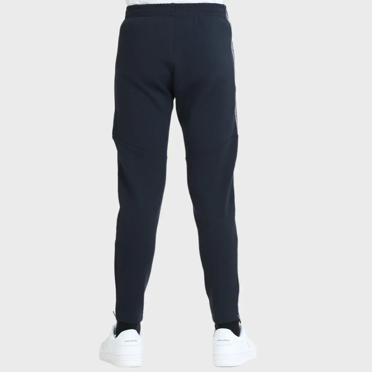 Длинные брюки с зауженным низом, боковые карманы на молнии, индивидуальные вставки, молния внизу и логотип, напечатанный на штанине.