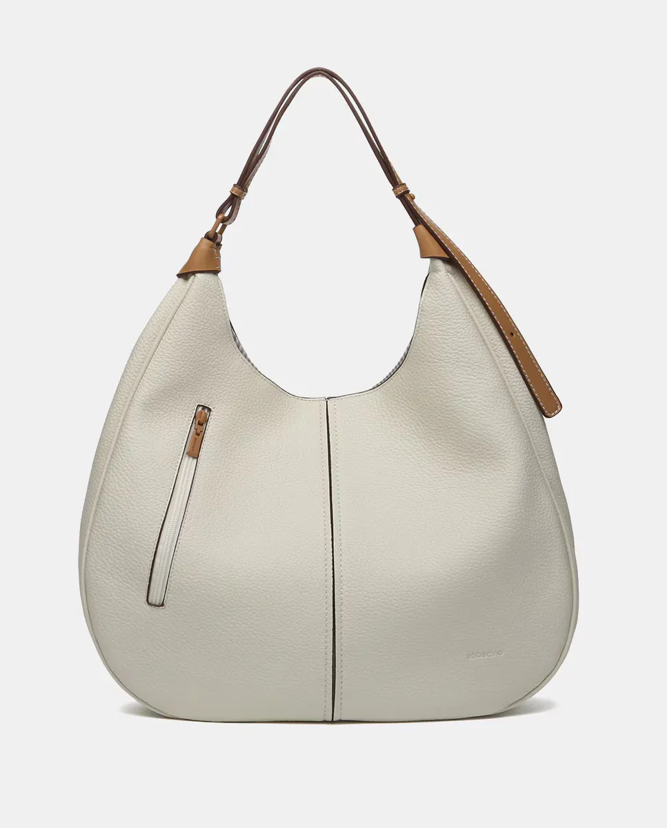 Макси-сумка через плечо в стиле хобо, изготовленная из переработанных материалов. Простой и минималистичный дизайн с большим внутренним объёмом, идеально подходит для офиса. Имеет детали из кожи, такие как ручка. Внутри просторная, с подкладкой и несколькими карманами. Верхний замок на молнии.