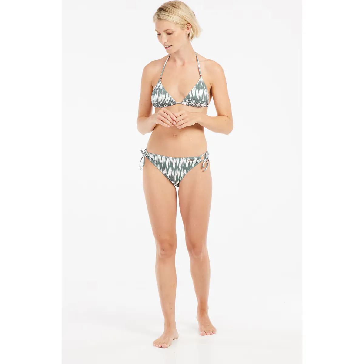 Увеличьте свой стиль с помощью бикини треугольной формы Sparks. С шнурком для регулируемой посадки, средней степенью покрытия и съемной подкладкой это бикини идеально подходит для активных дней на пляже. Его обычная талия и удобный дизайн делают его идеальным для бесконечного летнего веселья.