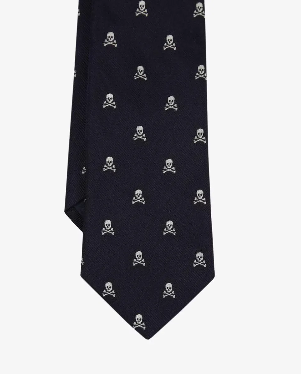 Галстук с мотивом черепов, изготовленный из ткани 100% шелк.