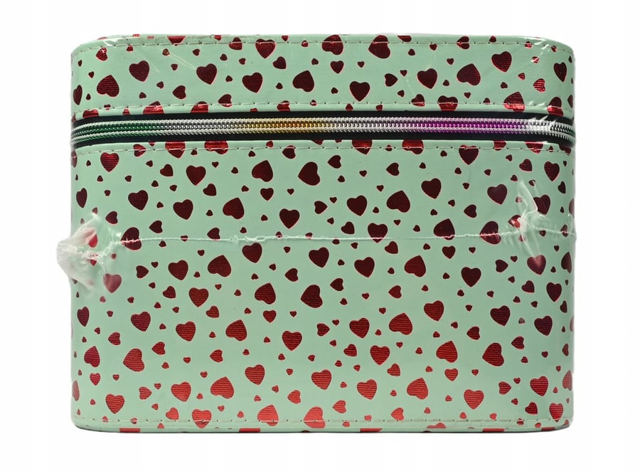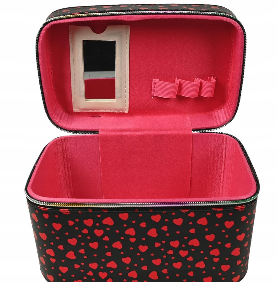 Коробка оснащена практичным зеркалом, прочной молнией и ручкой для переноски.