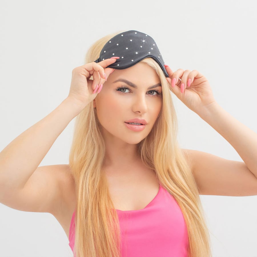 ШЕЛКОВАЯ МАСКА ДЛЯ ГЛАЗ CRYSTALLOVE С КРИСТАЛЛАМИ - ЧЕРНАЯ