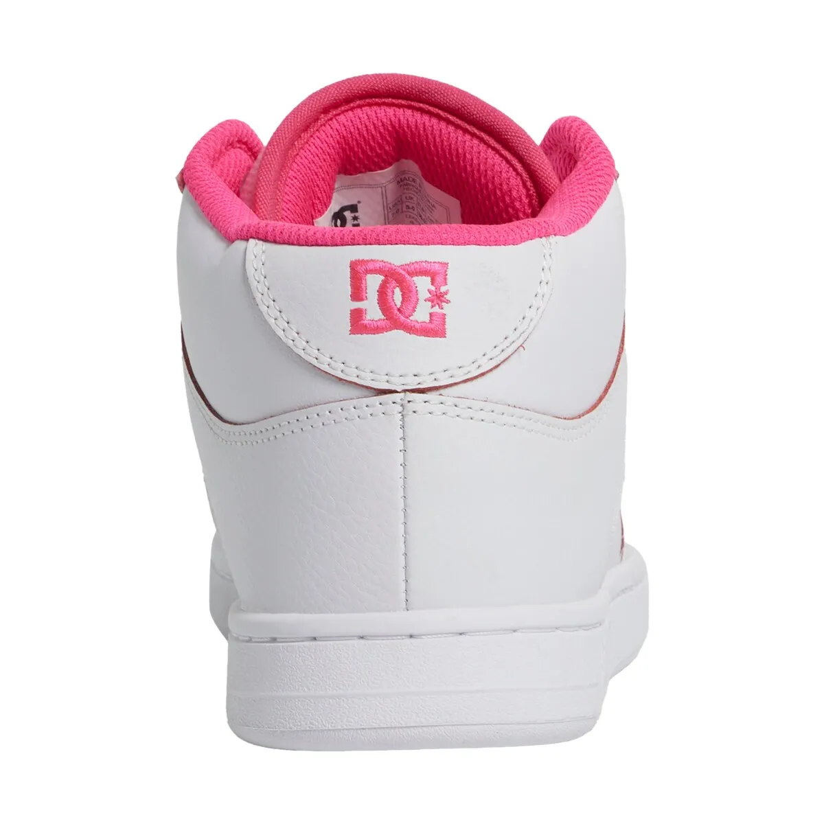 Полу-высокие кроссовки для женщин. Характеристики включают: верх: кожаный (говяжий) верх, высокий дизайн, язычок и воротник с мягкой подкладкой для большего комфорта и поддержки, устойчивая к абразивному воздействию резиновая подошва и дизайна зарегистрированного знака DC на подошве.