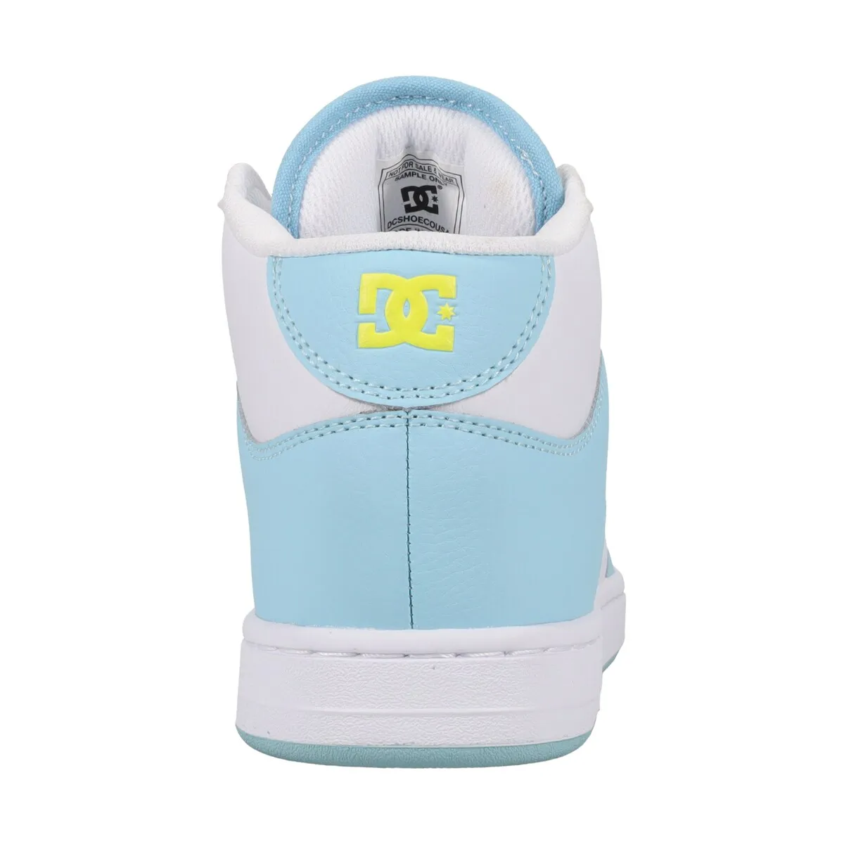 Полу-высокие кроссовки для женщин. Характеристики включают: верх: кожаный (говяжий) верх, высокий дизайн, язычок и воротник с мягкой подкладкой для большего комфорта и поддержки, устойчивая к абразивному воздействию резиновая подошва и дизайна зарегистрированного знака DC на подошве.