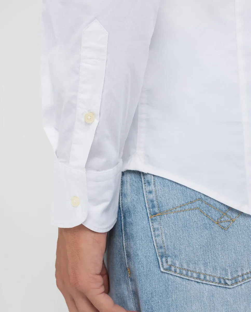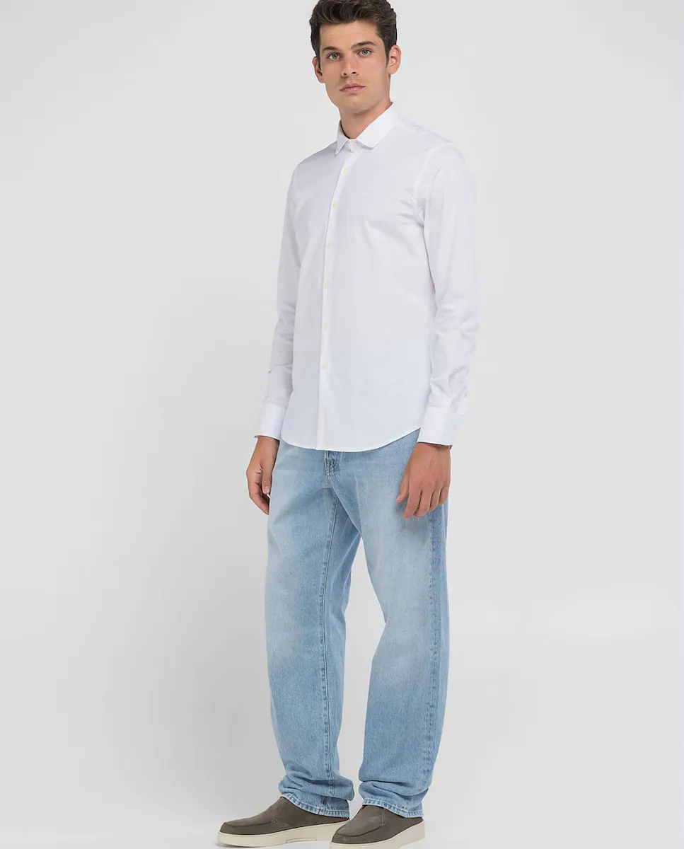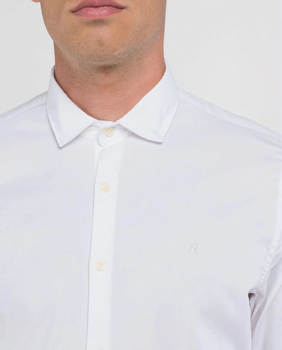 Узкая рубашка, сшитая из мягкого поплина с добавлением эластана. Однотонный дизайн отличается длинными рукавами и закругленным краем. Иконическая вышивка R в тон на груди, отражающая ДНК Replay, идеально дополняет эту элегантную рубашку, подчеркивая её сдержанный и современный стиль.