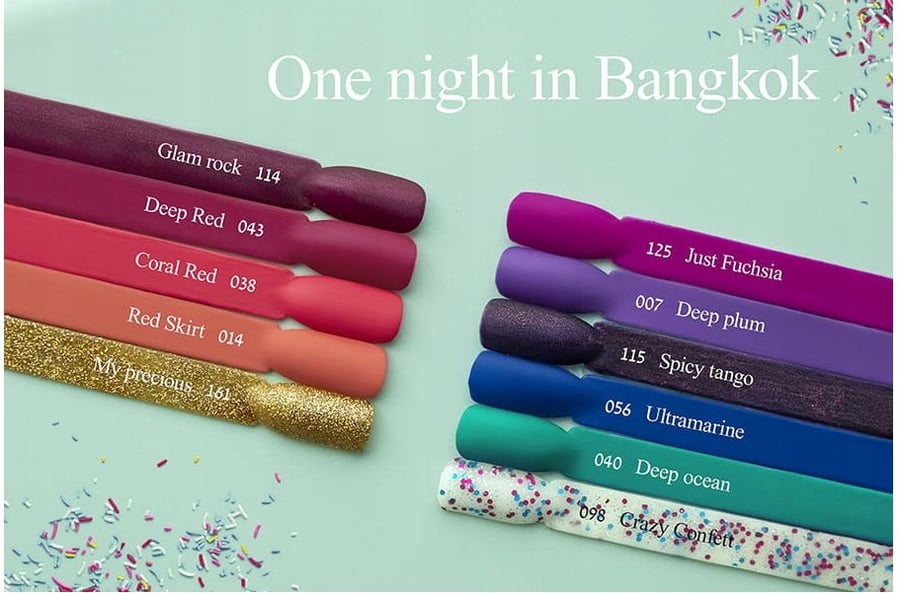 Покрасьте ноготь выбранным цветным гибридным лаком, просушите в УФ-лампе мощностью 48 Вт/24 Вт в течение 30 секунд. При необходимости повторите этот шаг для получения полного, интенсивного покрытия.