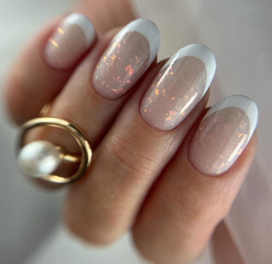 Однофазный бежевый гель с блестящими кусочками фольги. Этот гель с самовыравнивающимися свойствами сделает работу с этим продуктом быстрой и приятной. Добавление кусочков фольги позволит вам выполнять укладку без необходимости применения гибридов или топов с фольгой, что значительно сокращает время работы. Это многофункциональный гель, который хорошо подойдет как для создания типса в наращивании френча, так и для моделирования «принцессных ногтей». Этот гель будет отлично смотреться сам по себе, а также станет прекрасной основой для различных видов декора.