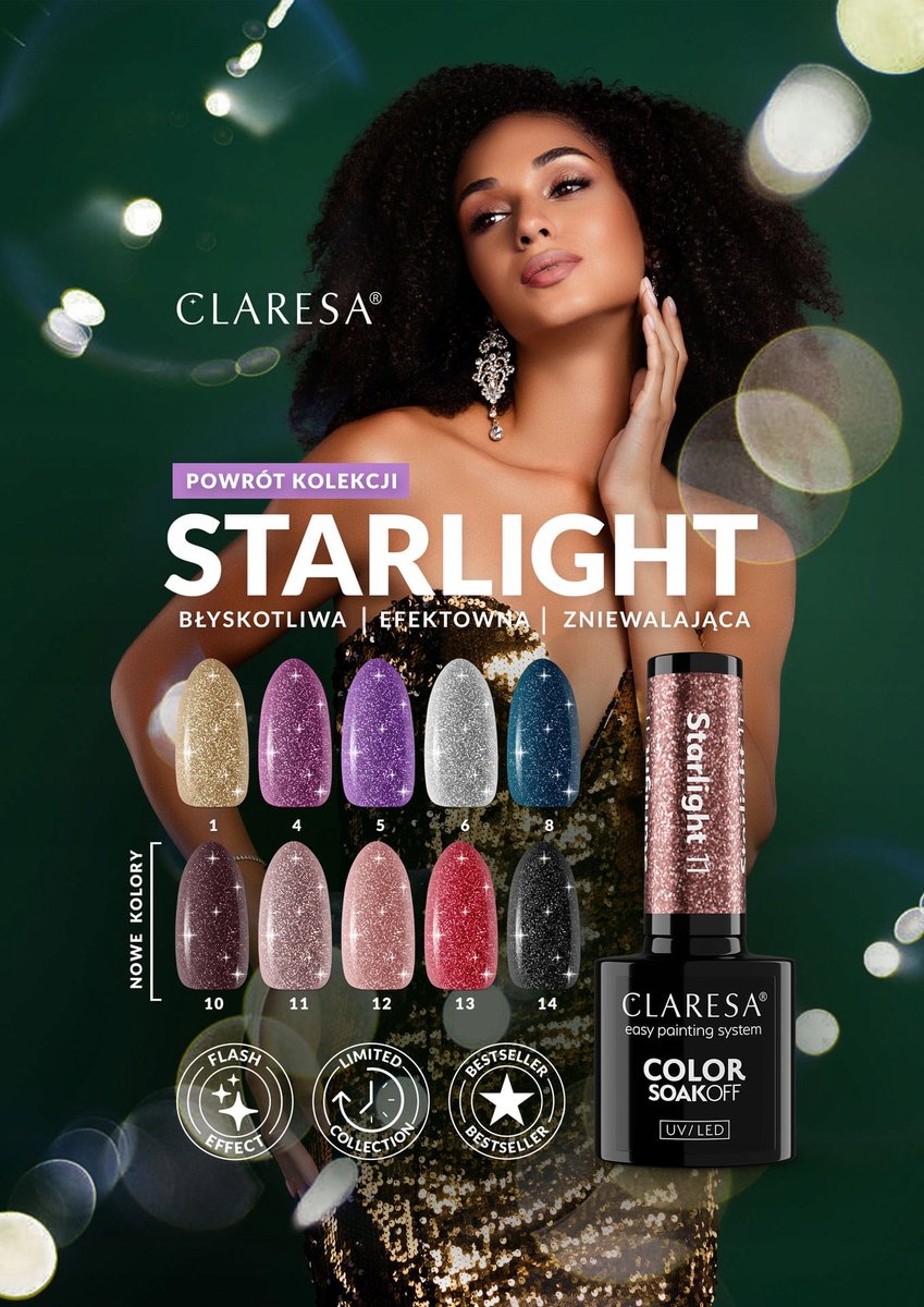 Claresa Starlight 12 Hybrid Glitter Nail Polish Flash Effect 5 G 1 642₽