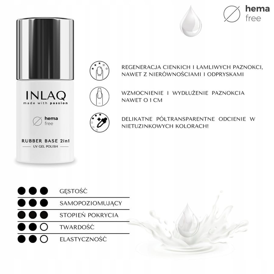 : Работать с резиновой основой INLAQ просто, приятно и быстро. Продукт обеспечивает исключительный комфорт при нанесении без эффекта залитой кутикулы, что является большим преимуществом как для профессионалов, так и для людей, делающих маникюр в домашних условиях.