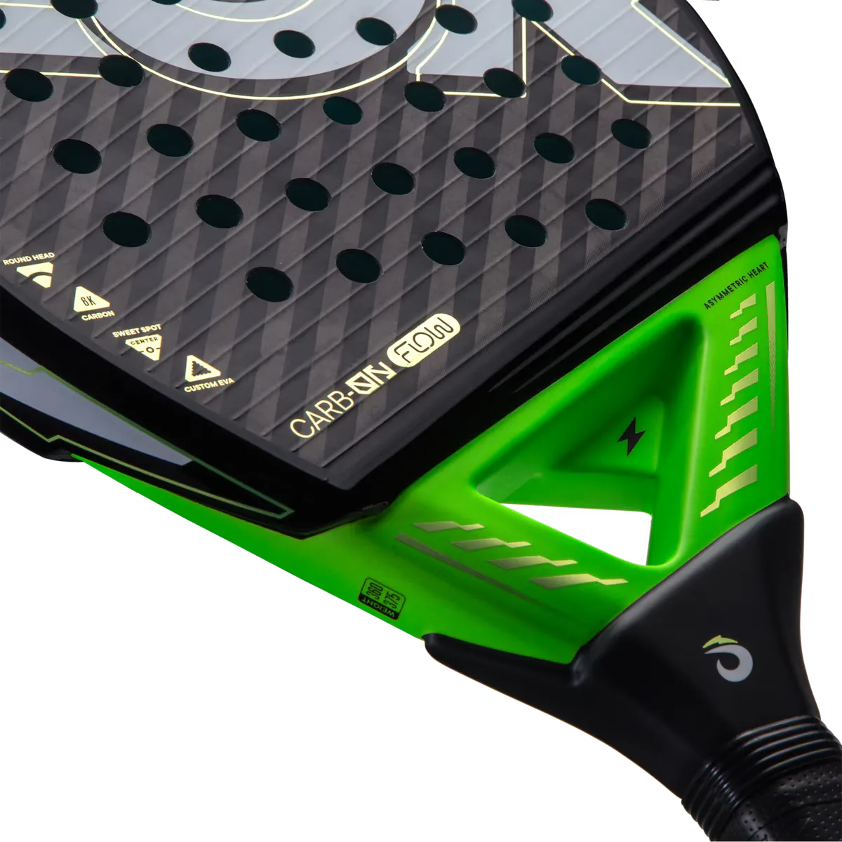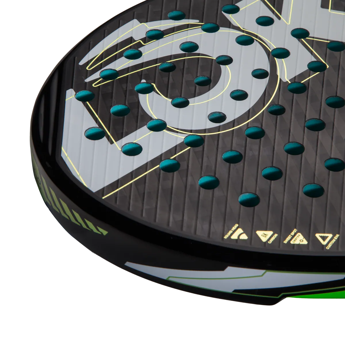 C6 УГЛЕРОД. В коллекции Generation ONE мы работаем с углеродом в трех разных плоскостях. Благодаря этой технологии мы можем регулировать углы соединения слоев волокна для достижения необходимой гибкости. Кастомная резина EVA: Наши ракетки Generation ONE оснащены уникальной резиной, которая обладает отличной способностью к восстановлению, что помогает игроку добиться большей силы удара в момент схватки. Восстановление — это способность резины возвращаться в исходное положение за меньшее время после удара мячом. Благодаря своей плотности эта резина подходит для любого игрока и представлена в эксклюзивном зеленом цвете, соответствующем корпоративному стилю бренда.