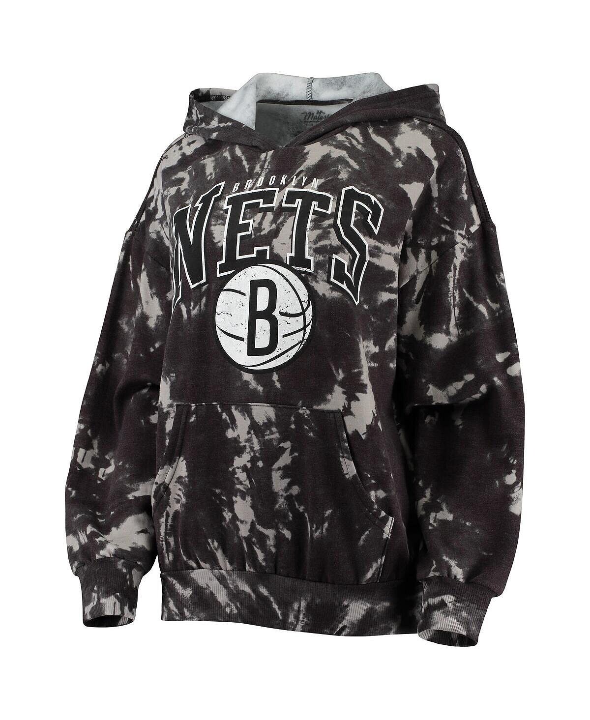Женский черный пуловер с капюшоном Brooklyn Nets Burble Tie-Dye Tri-Blend Majestic, черный