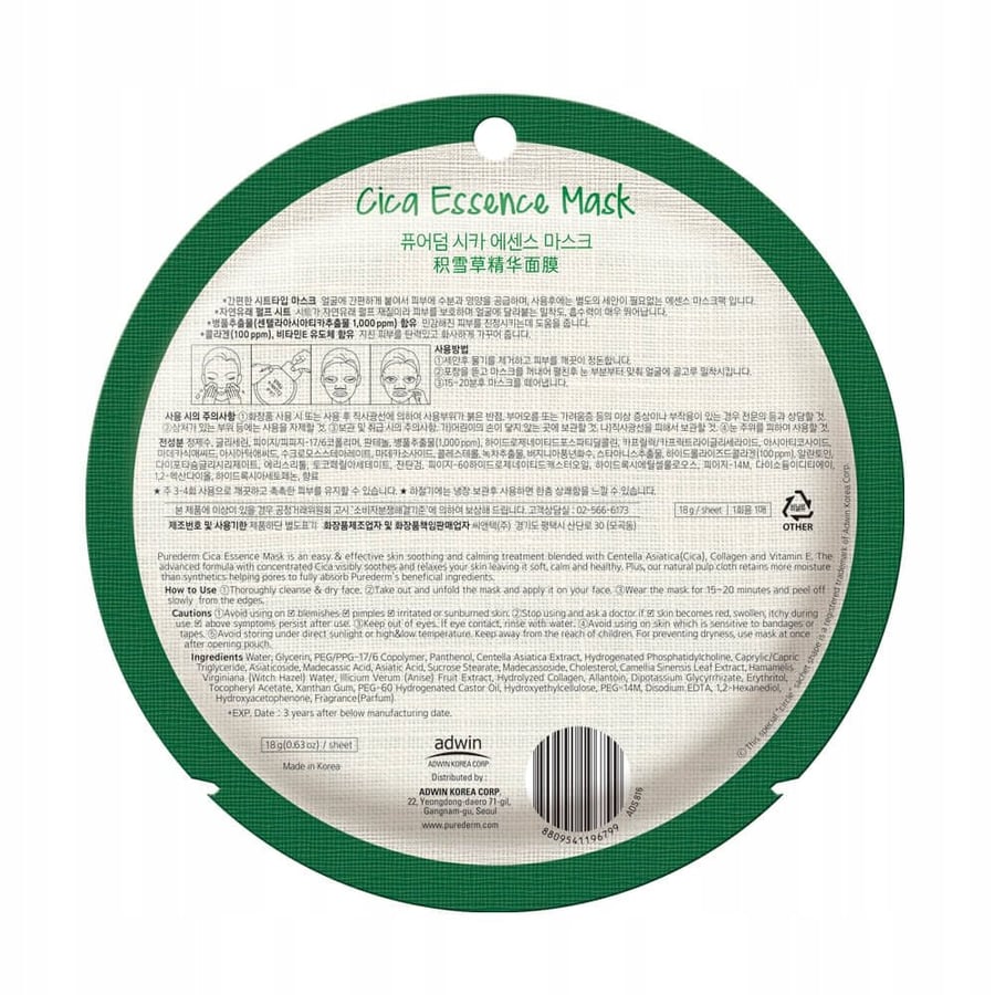 Маска-эссенция PUREDERM CICA: ваш зеленый спаситель для уставшей кожи