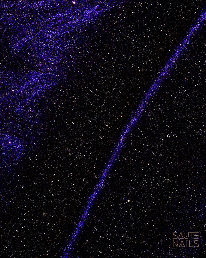 Гибридный лак для ногтей Cat Eye Effect E03 от Saute Nails - это потрясающий оттенок синего, переплетающийся с глубокими фиолетовыми оттенками, которые вместе создают завораживающий эффект звездного неба. Этот лак, обогащенный частицами, переливающимися разными оттенками, отражает свет, создавая на ногтях захватывающий трехмерный эффект.