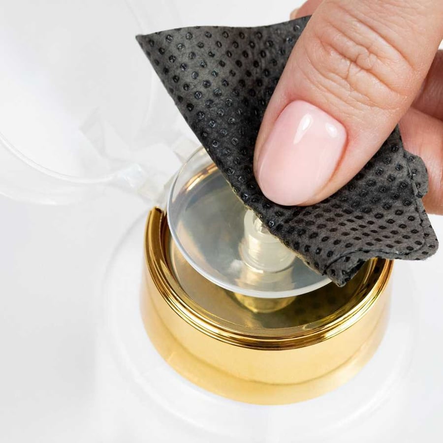 Поместите ватный диск на дозатор и нажмите на него, дозатор автоматически выдаст жидкость.