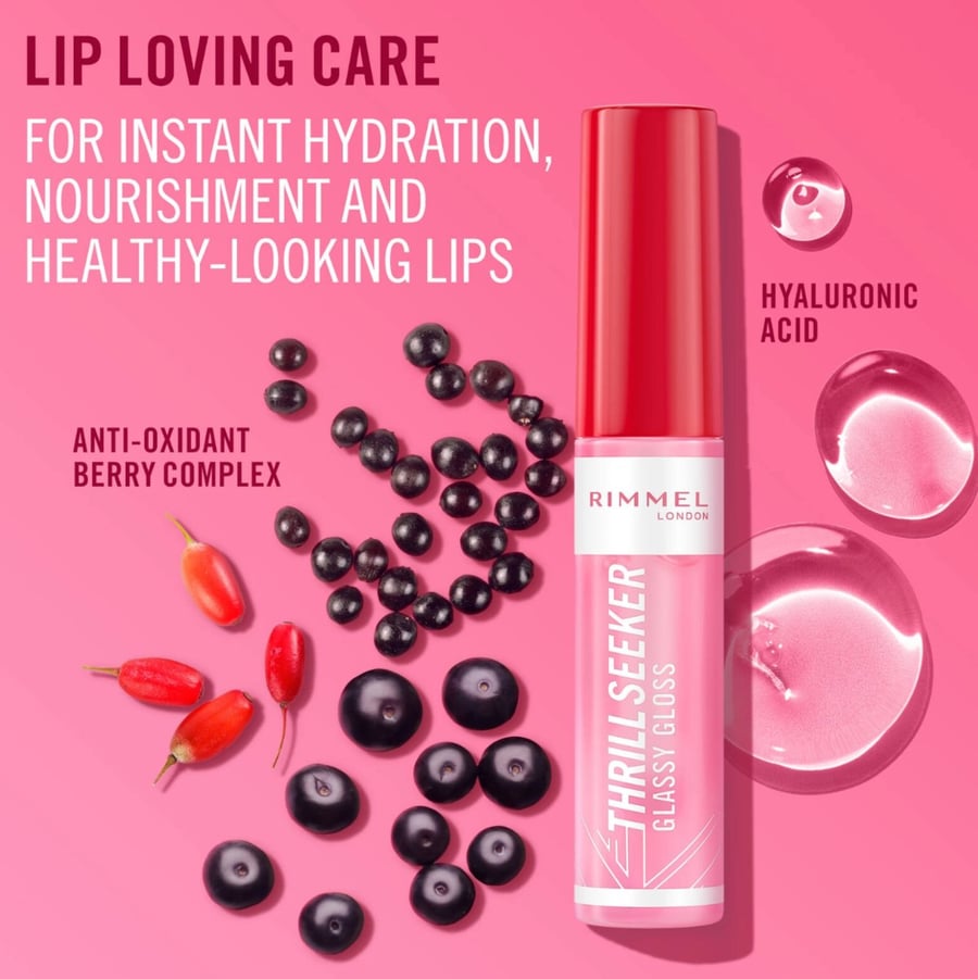 Придайте губам более пухлые губы с глянцевым блеском при помощи блеска для губ Rimmel London Thrill Seeker Glassy Gloss. Его веганская формула содержит гиалуроновую кислоту и антиоксидантный комплекс, которые отлично увлажняют и питают губы, придавая им здоровый вид. Блеск придает губам невероятно мягкий и сияющий вид без ощущения липкости, радуя цитрусовым ароматом с нотками кокосовой воды, красного ананаса и розовых лесных ягод, а сверхмягкий аппликатор размера XXL точно дозирует и распределяет средство, гарантируя безупречное нанесение. Благодаря формуле, обогащенной гиалуроновой кислотой и комплексом антиоксидантов, блеск мгновенно повышает увлажненность губ, питает их и делает их более здоровыми и пухлыми. Для мгновенного улучшения внешнего вида губ и придания им зеркального блеска используйте блеск для губ Rimmel London Thrill Seeker Glassy Gloss.