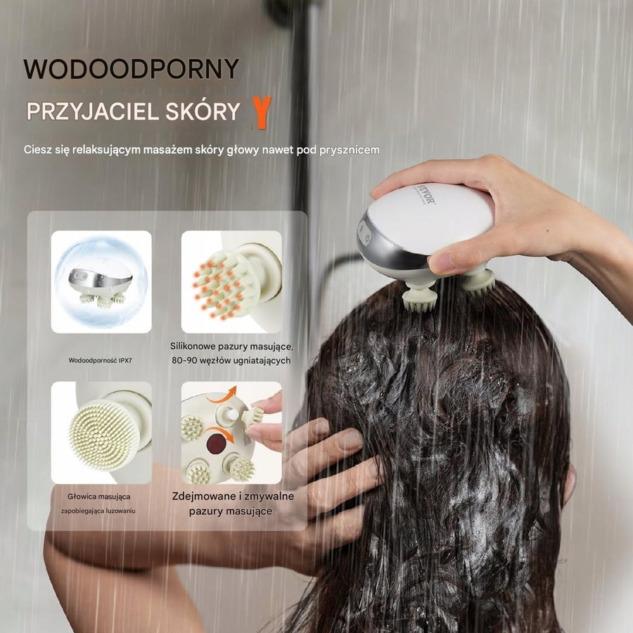 МАССАЖЕР ДЛЯ ГОЛОВЫ ЭЛЕКТРИЧЕСКИЙ МАССАЖ КОЖИ ВОДОНЕПРОНИЦАЕМЫЙ