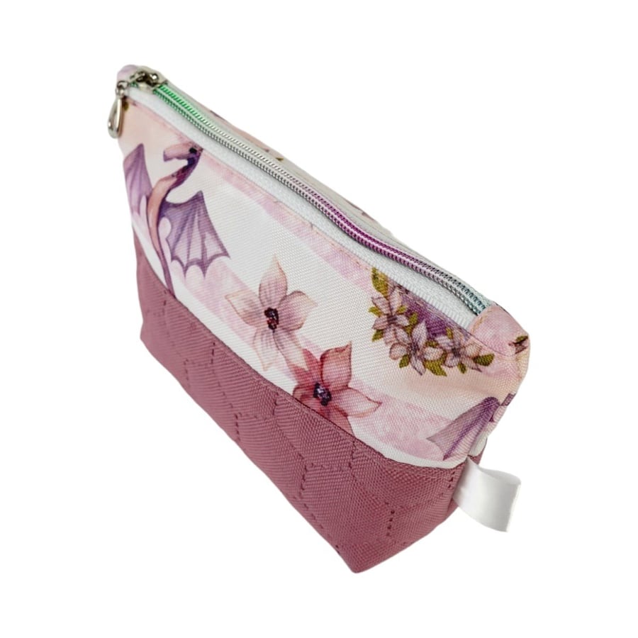 Внешний вид детской косметички Smoczy Mix характеризуется нежными пастельными тонами, включающими оттенки розового и кремового. Верхняя часть украшена красивым цветочным узором, а нижняя часть выполнена в приглушенном пудрово-розовом цвете с фактурной отделкой. Эта текстурированная отделка не только добавляет долговечности, но и обеспечивает уникальные тактильные ощущения.